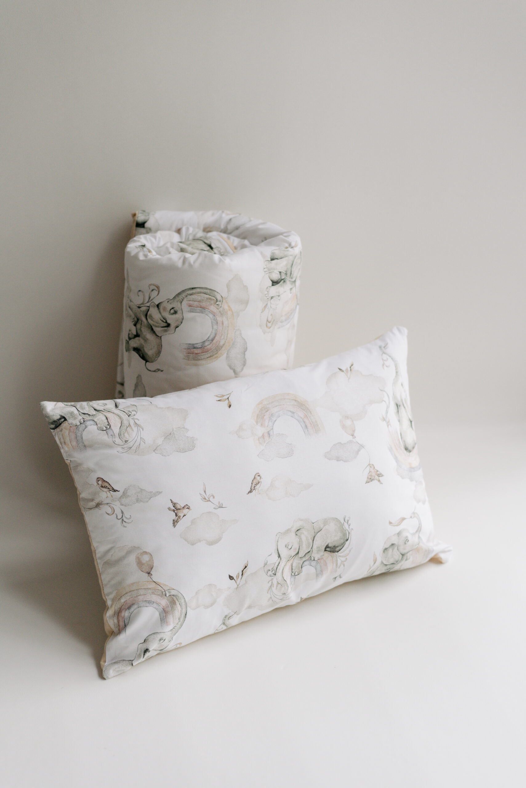 Darüber hinaus kannst du ein komplettes Set in einem Muster zusammenstellen, einschließlich Bettwäsche, Decke und Spielmatte, um einen zusammenhängenden und gemütlichen Raum für dein Kind zu schaffen.