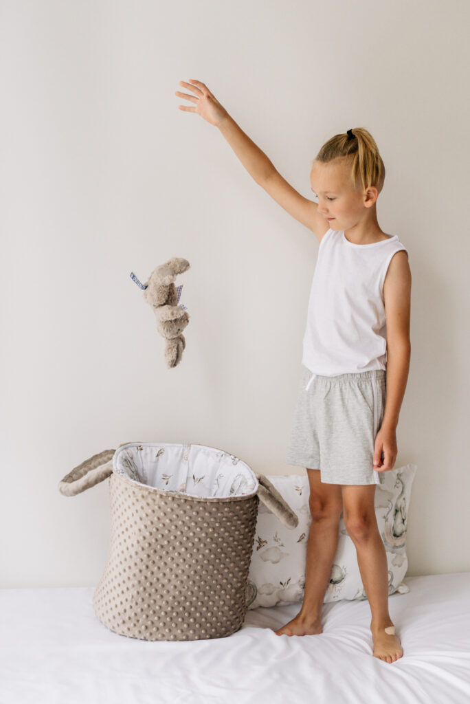 Und wenn du nach praktischen Lösungen suchst, die dabei helfen, Ordnung im Kinderzimmer zu halten, haben wir eine Empfehlung für dich! Unsere super Spielzeugkörbe, handgefertigt aus weichem Minky-Material, sind eine ausgezeichnete Alternative zu herkömmlichen Plastikbehältern. Sie sind einfach sauber zu halten, leicht zu ordnen und in einer Vielzahl von Mustern erhältlich, die perfekt in die Einrichtung jedes Kinderzimmers passen.