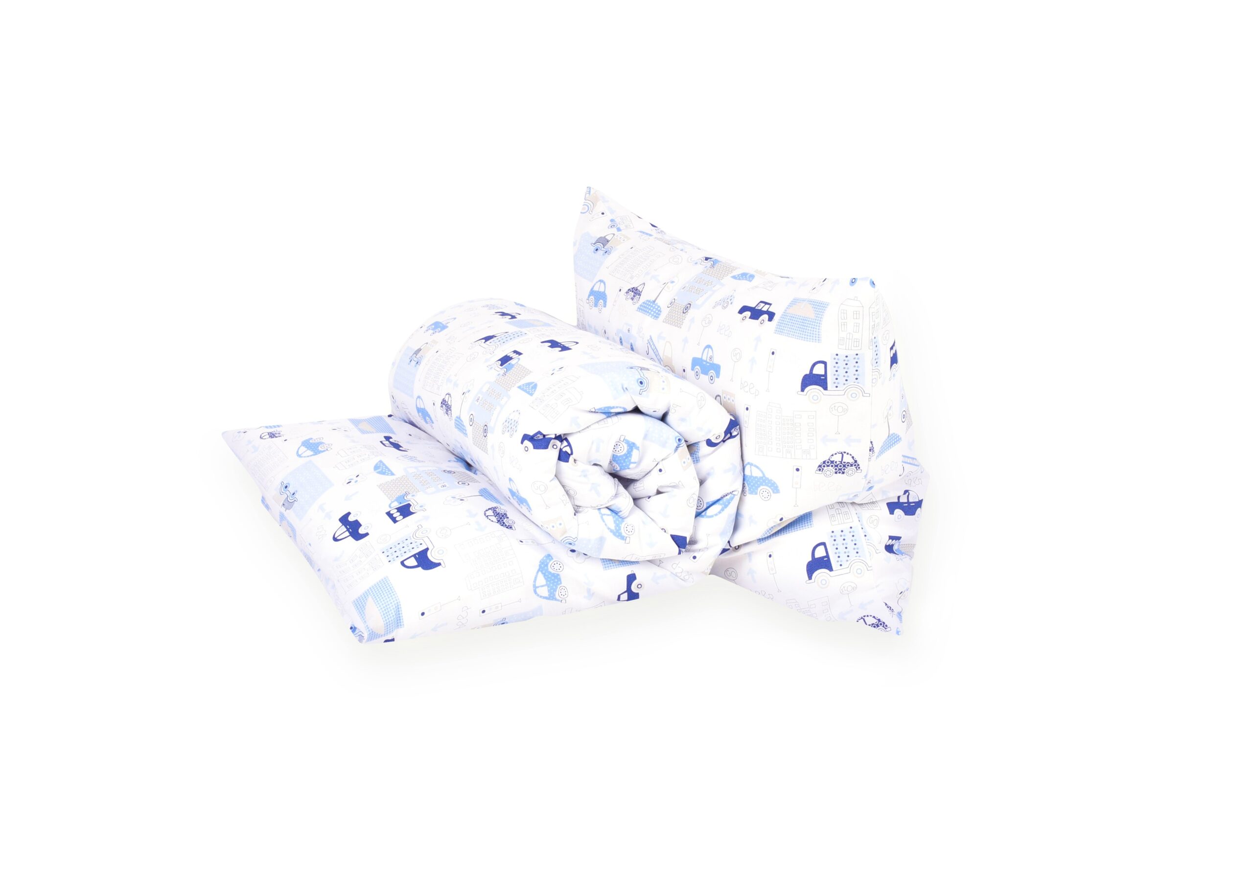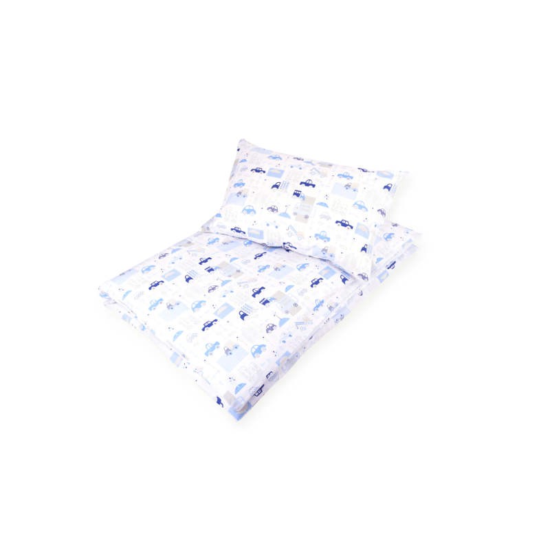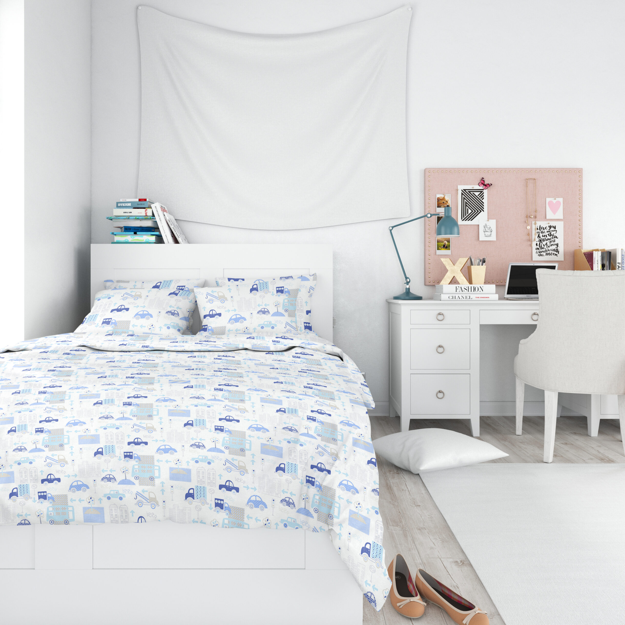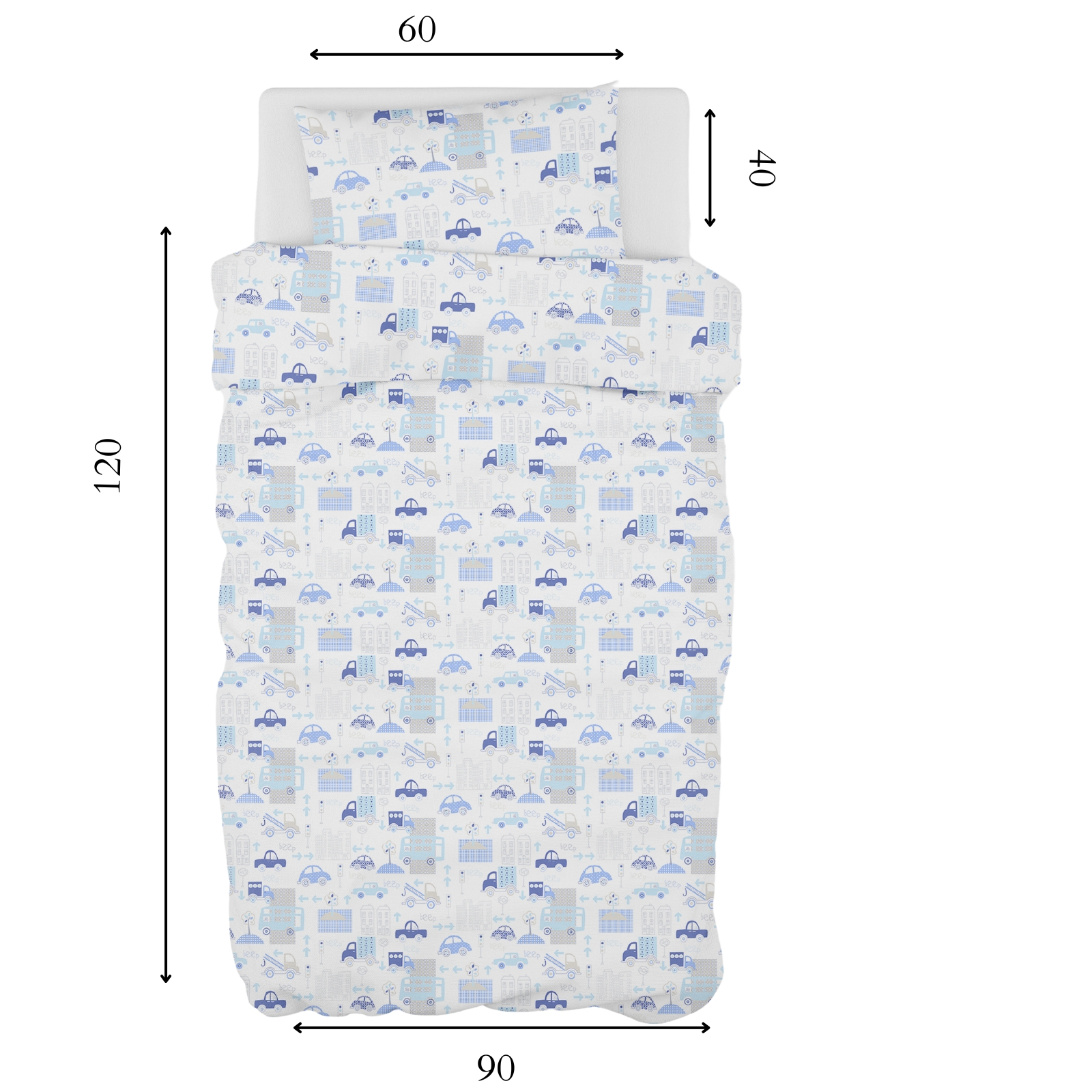 Kinderbettwäsche 120×90 aus 100 % Baumwolle -Weiß mit Auto Motiv für Jungen und Madchen