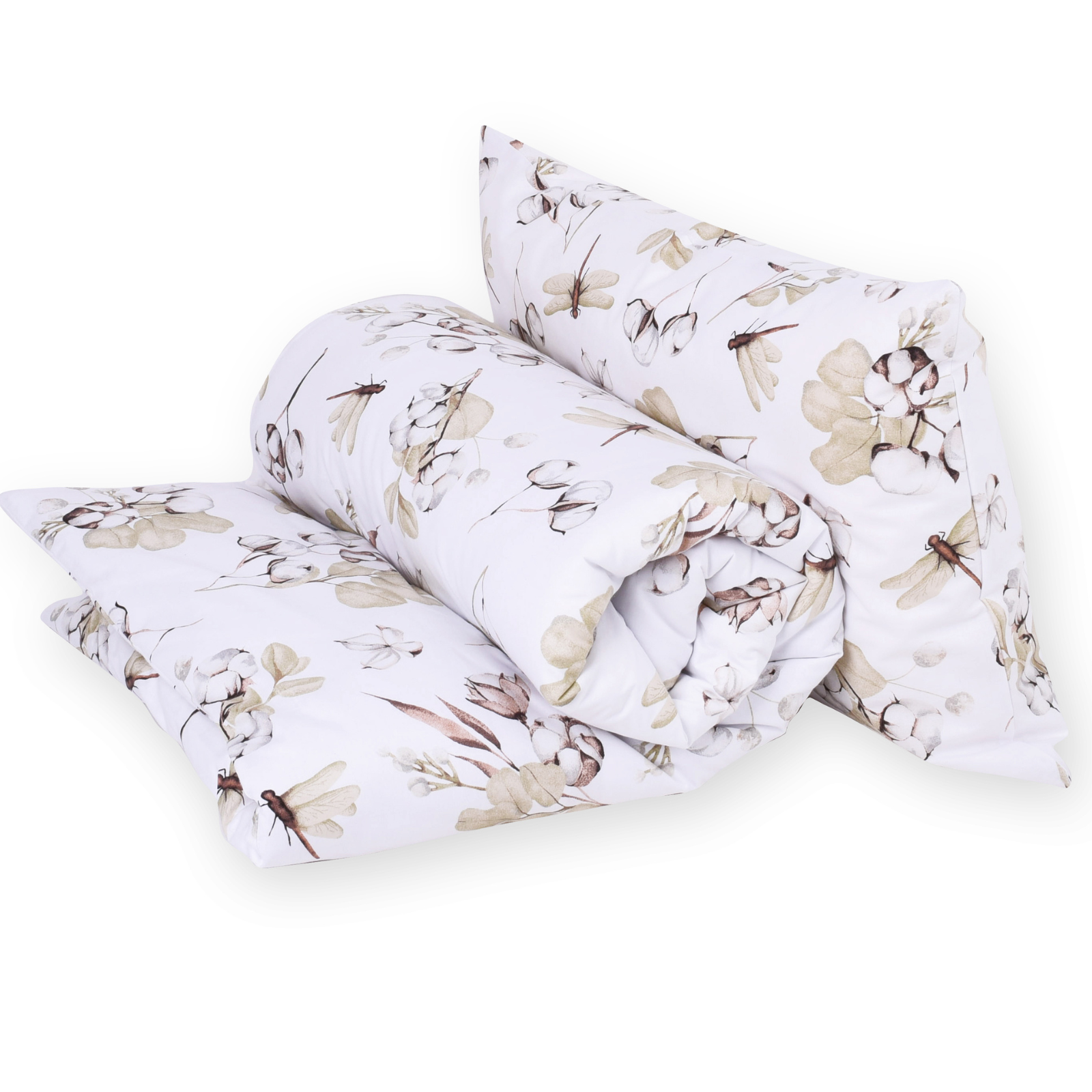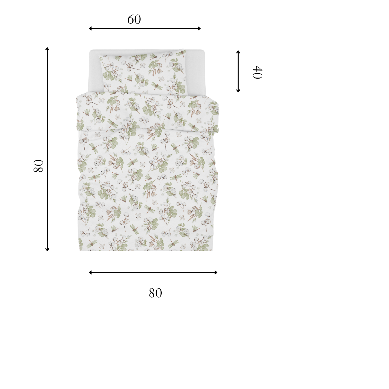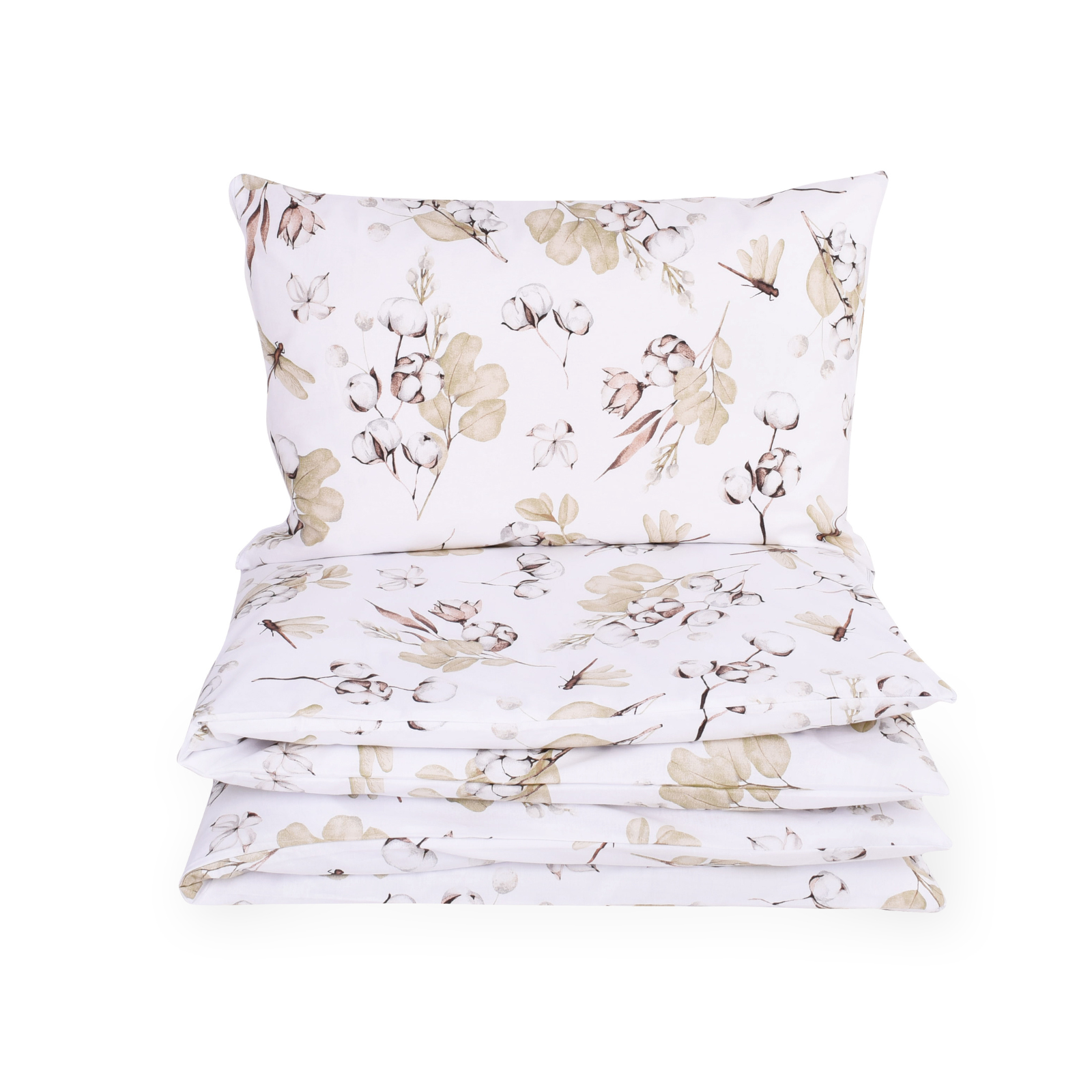 Babybettwäsche 80×80 Kissen 35×40 Weiß Unisex mit Pflanzen Motiv für Baby 100 % Baumwolle