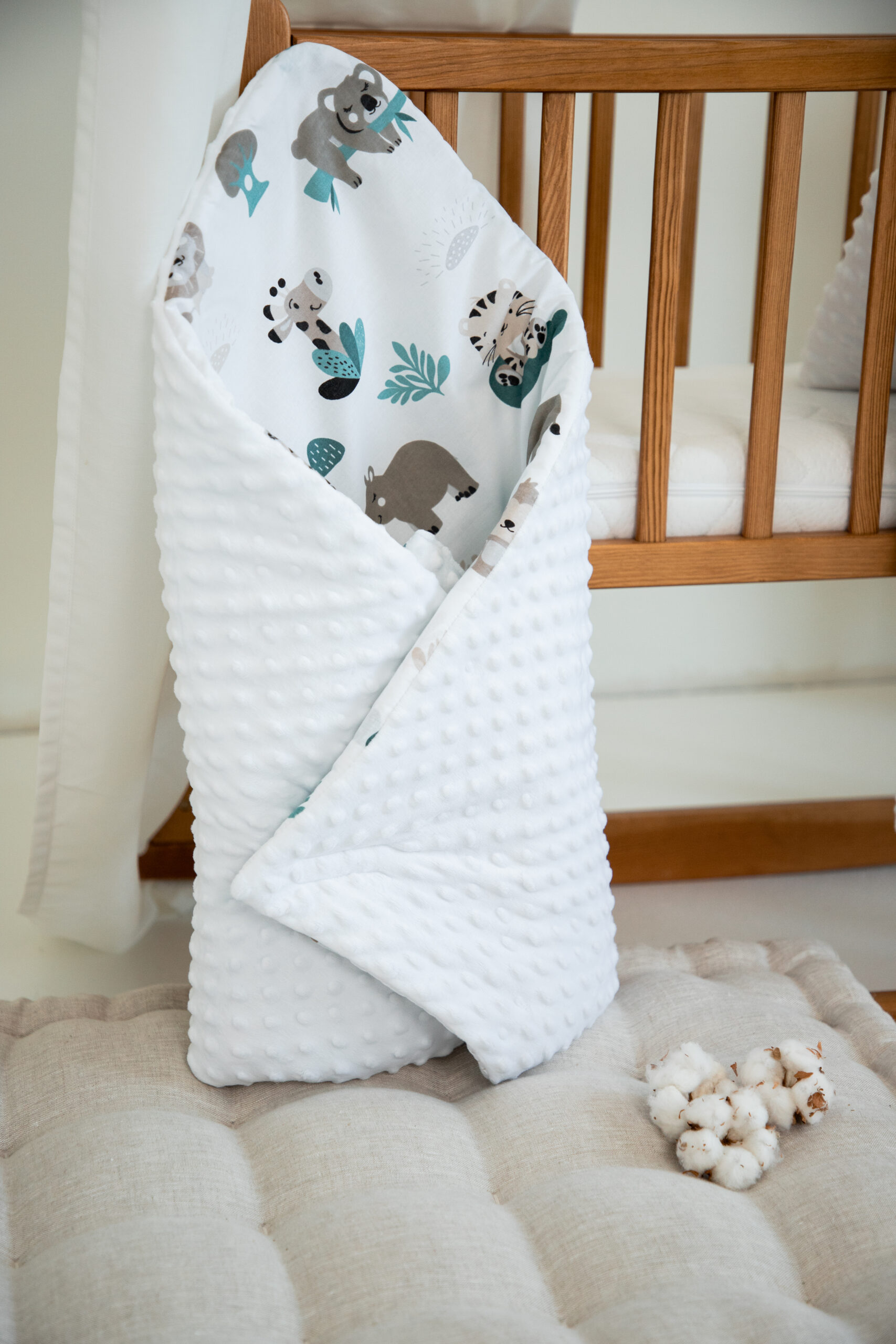 •  Unsere Windeldecke verfügt über zwei verschiedene Seiten. Eine Seite besteht aus weicher Baumwolle mit Oeko-Tex 100 Zertifizierung für die Sicherheit und den Komfort der zarten Babyhaut. Die andere Seite ist aus weichem und kuscheligem Minky-Stoff gefertigt, der außergewöhnliche Weichheit und Wärme bietet.