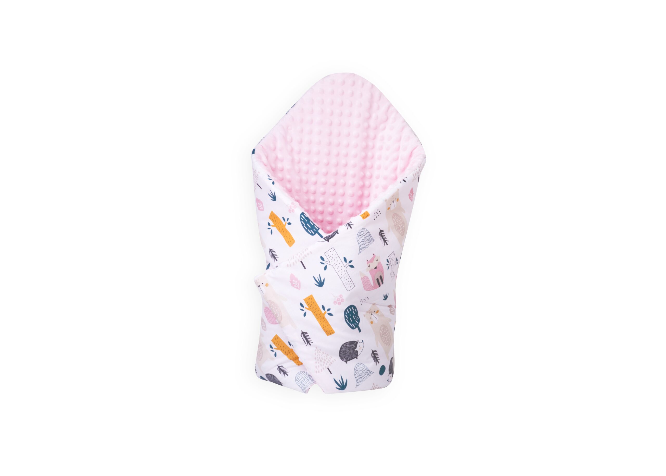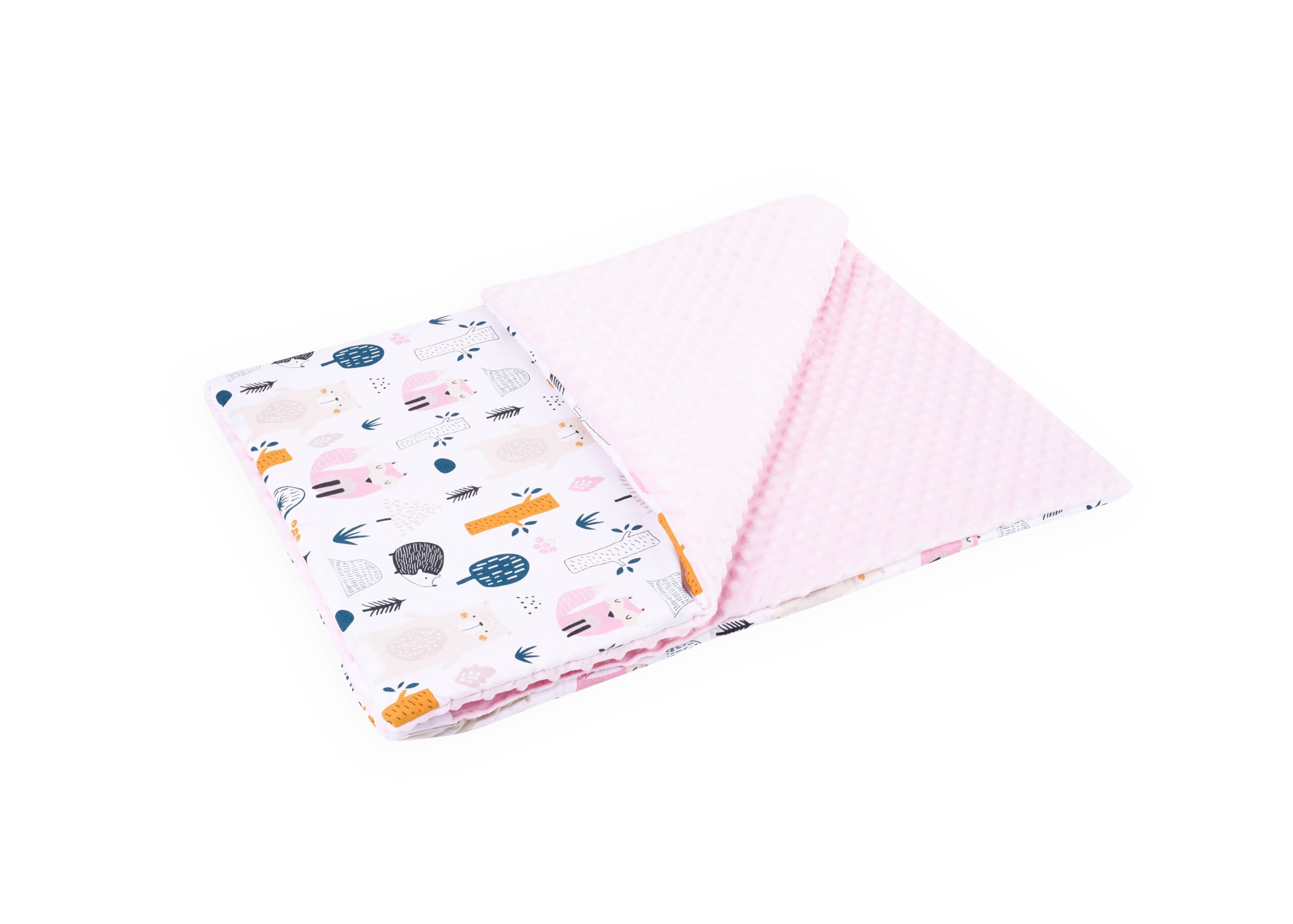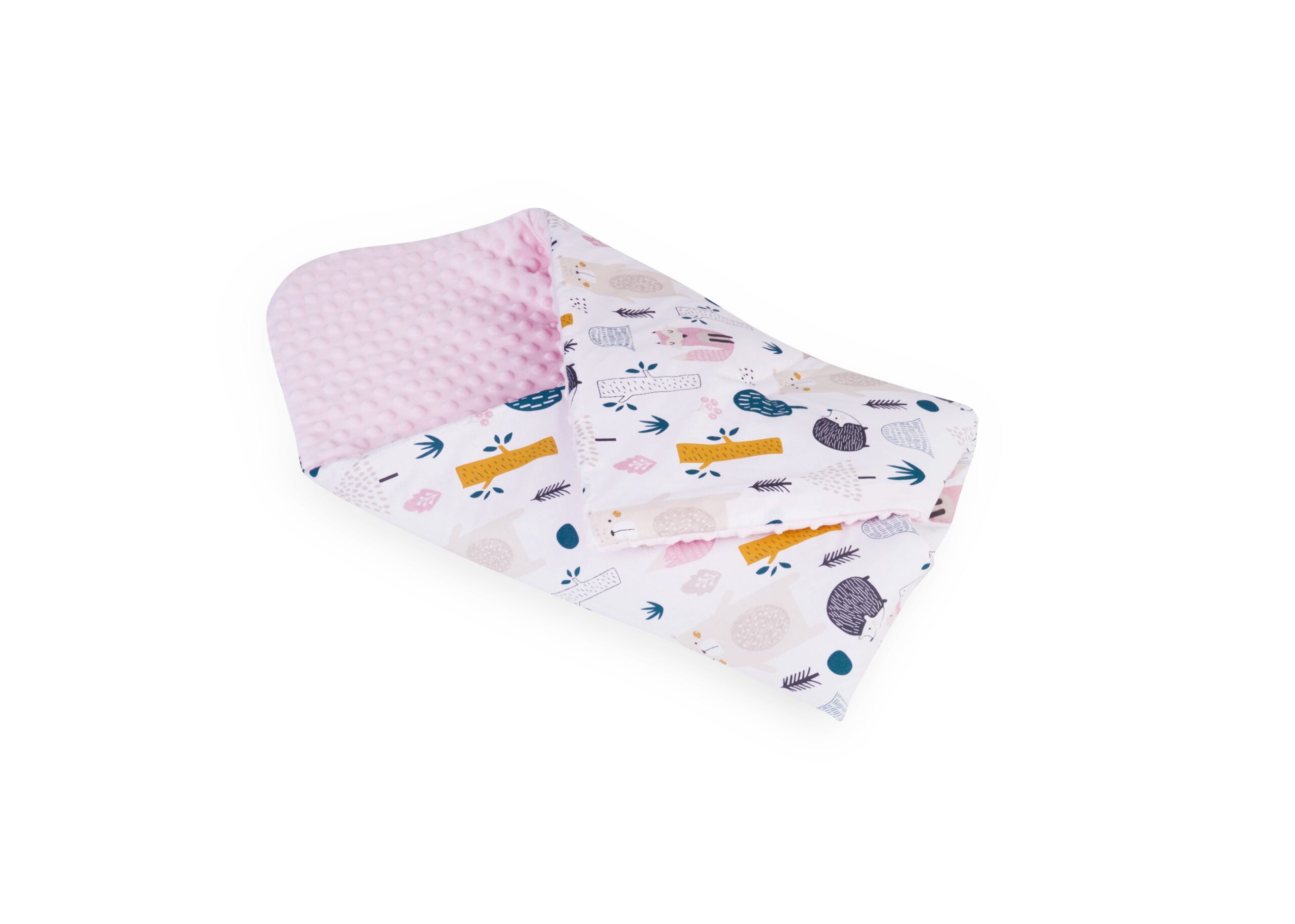 Doppelseitige Kuscheldecke 75×75 mit Kletterverschluss mit Wald Rosa Motiv für Baby