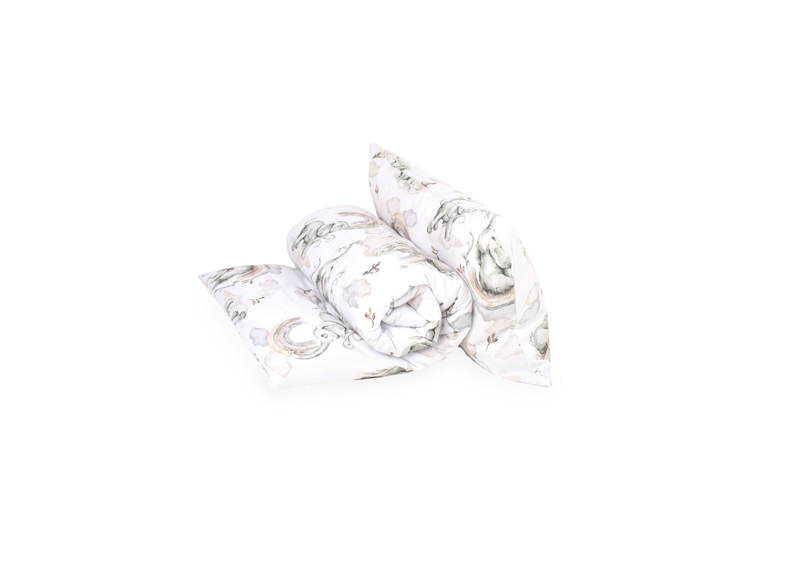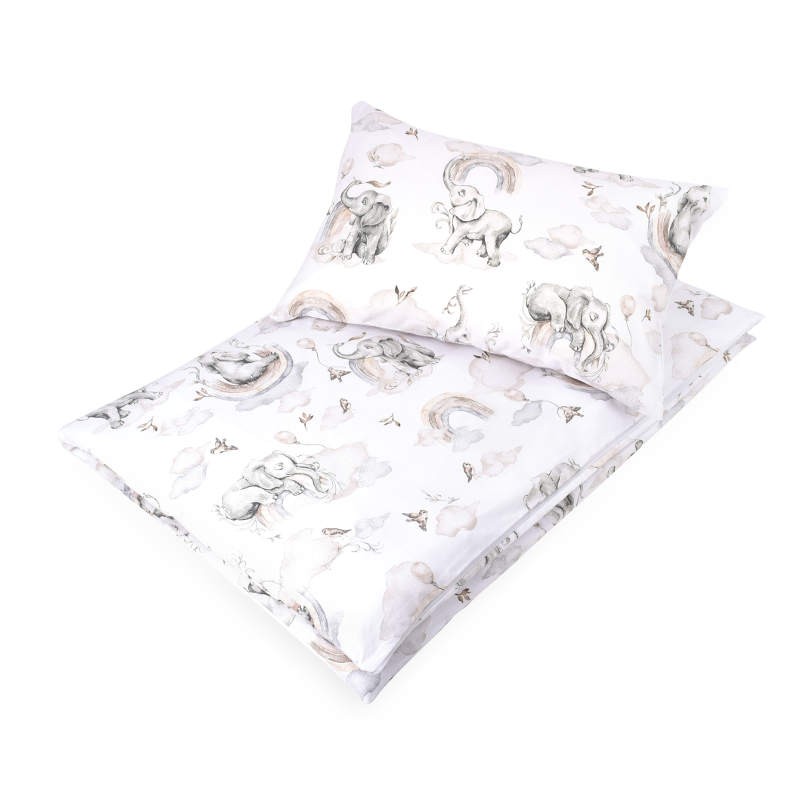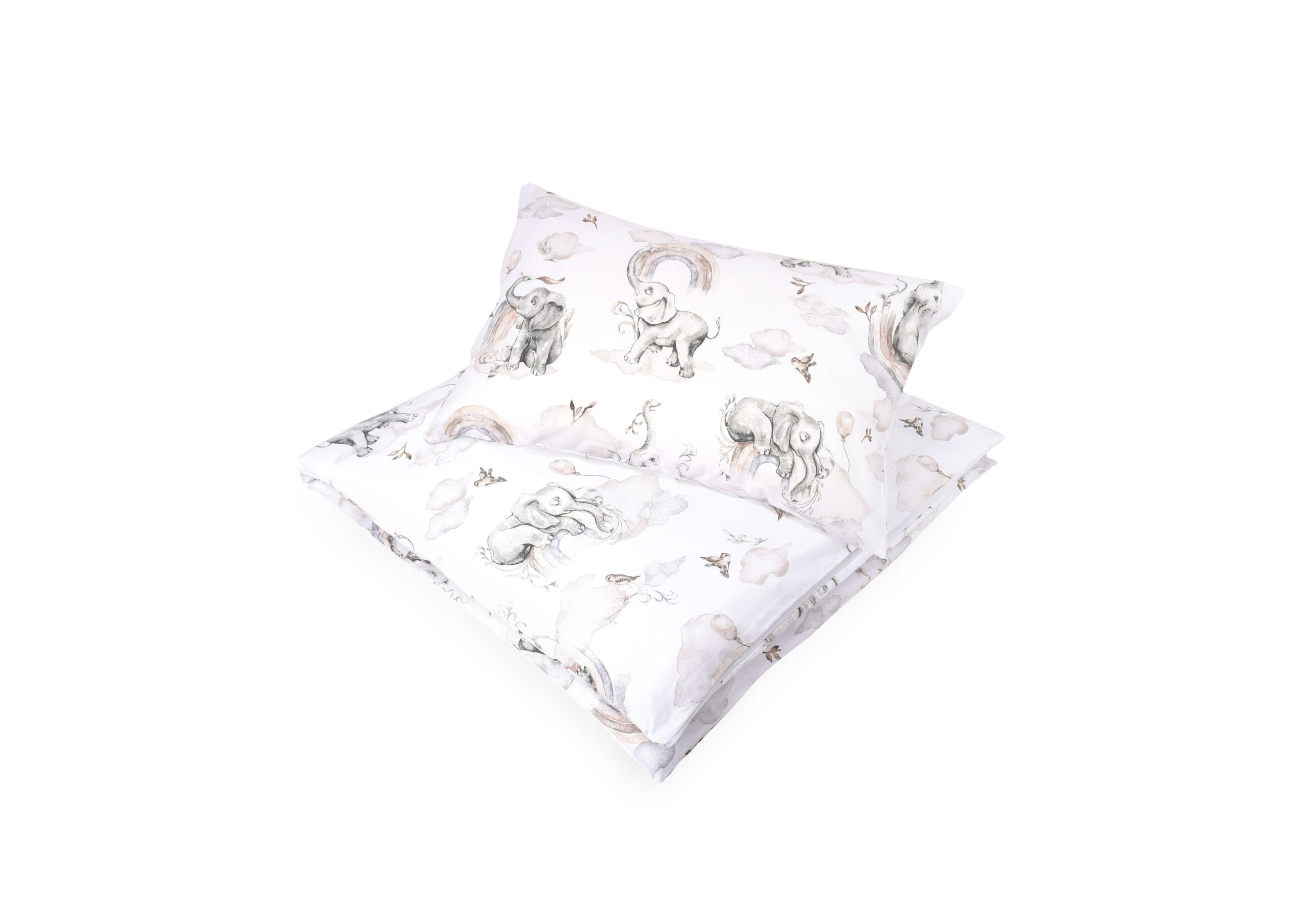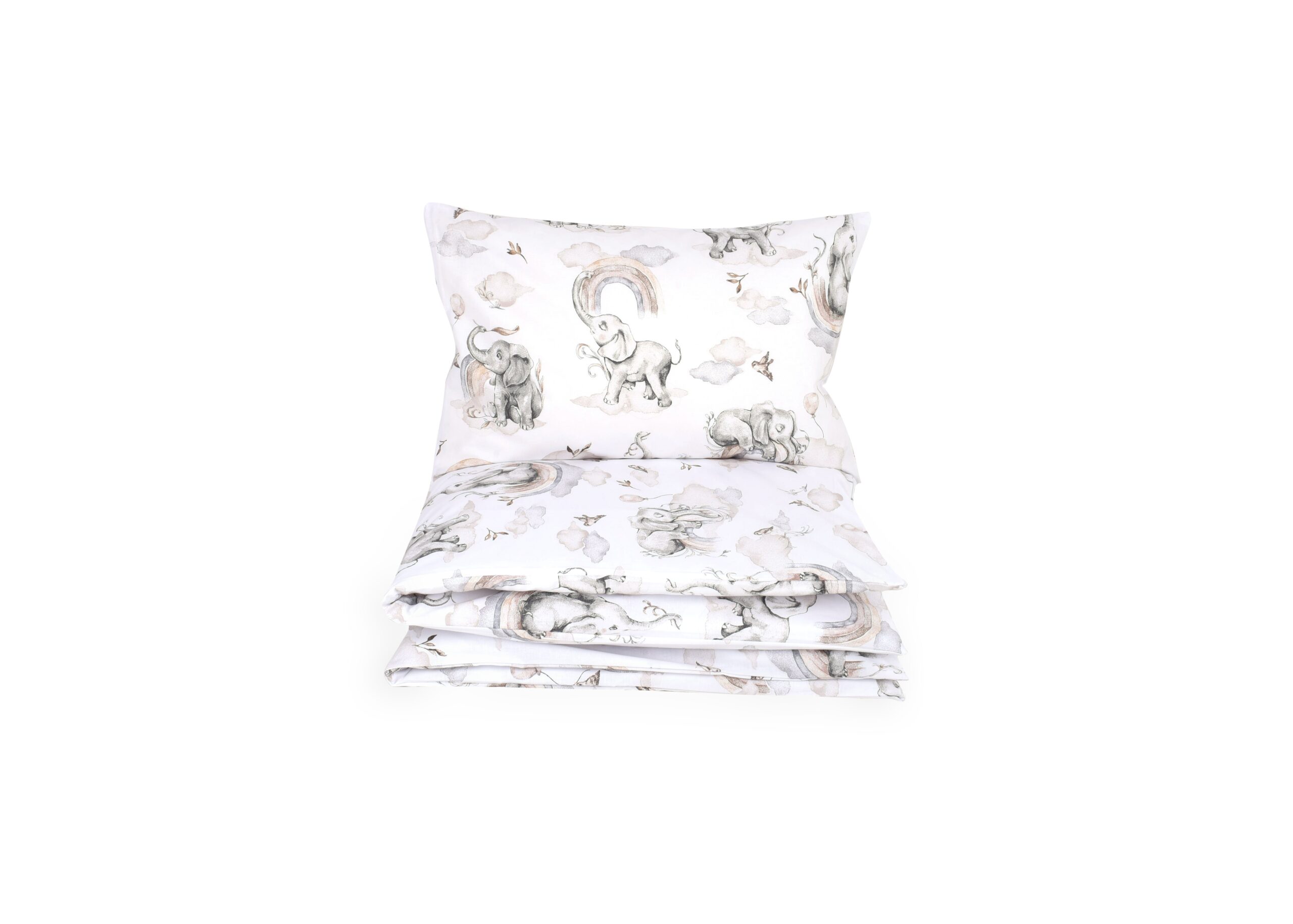 Kinderbettwäsche 100 % Baumwolle 120×90 cm mit Reißverschluss – Weiß mit Tiermotiv Elefant für Jungen und Mädchen