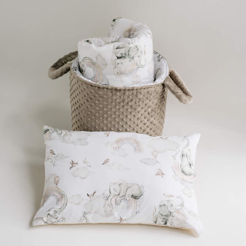 Bezaubernde und kinderfreundliche Designs. Weiß mit Elefant  Motiv . Große 80×80 / 60×40 . Verleiht dem Kinderzimmer Charme.