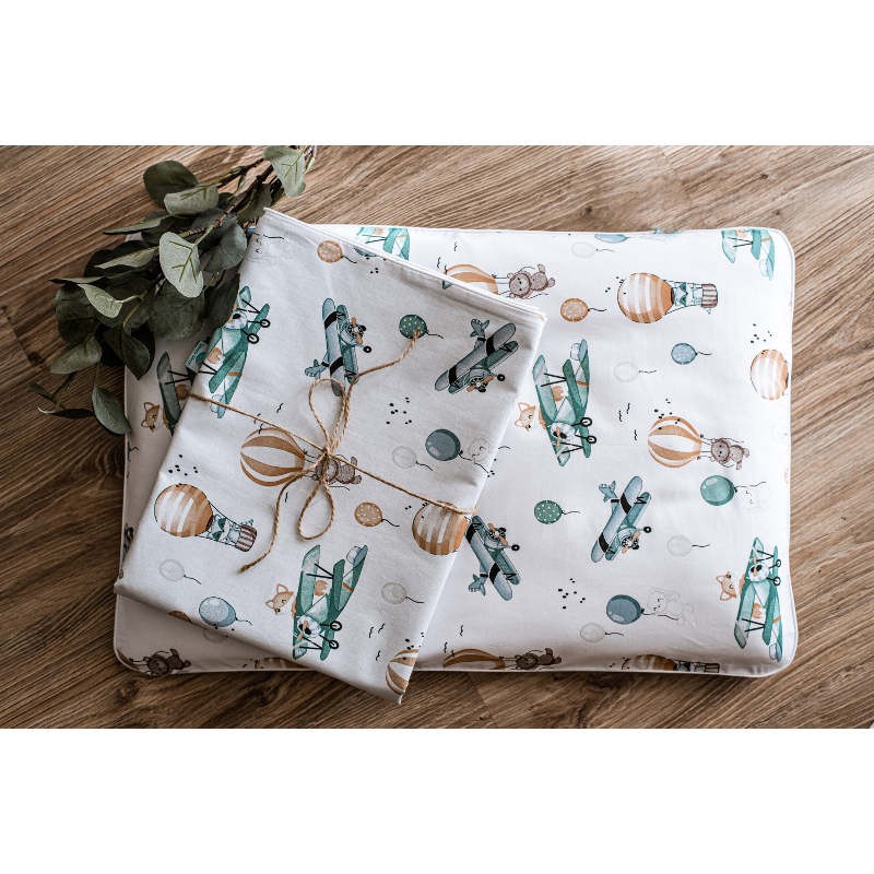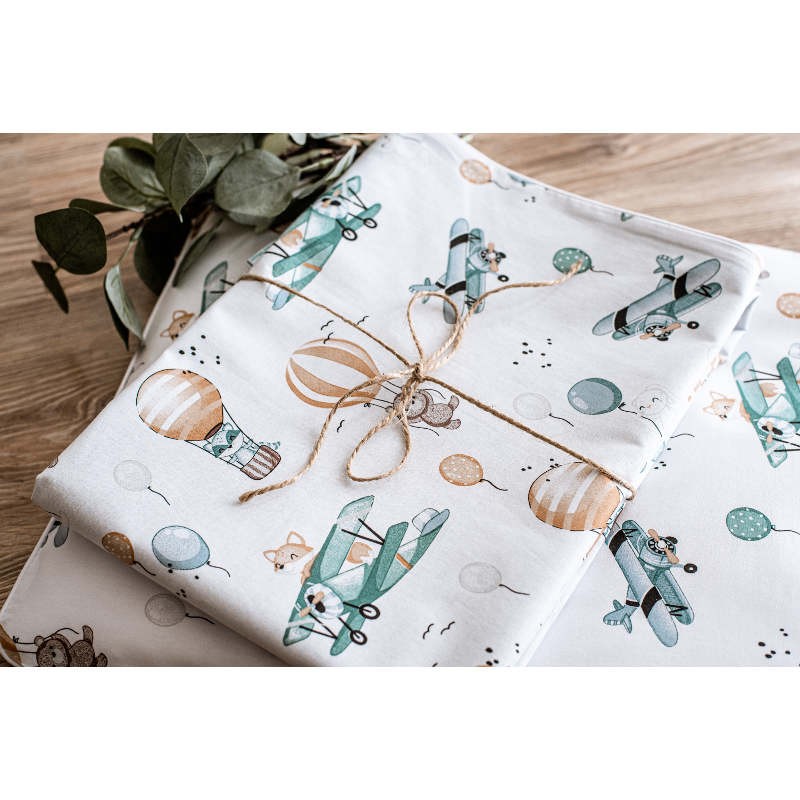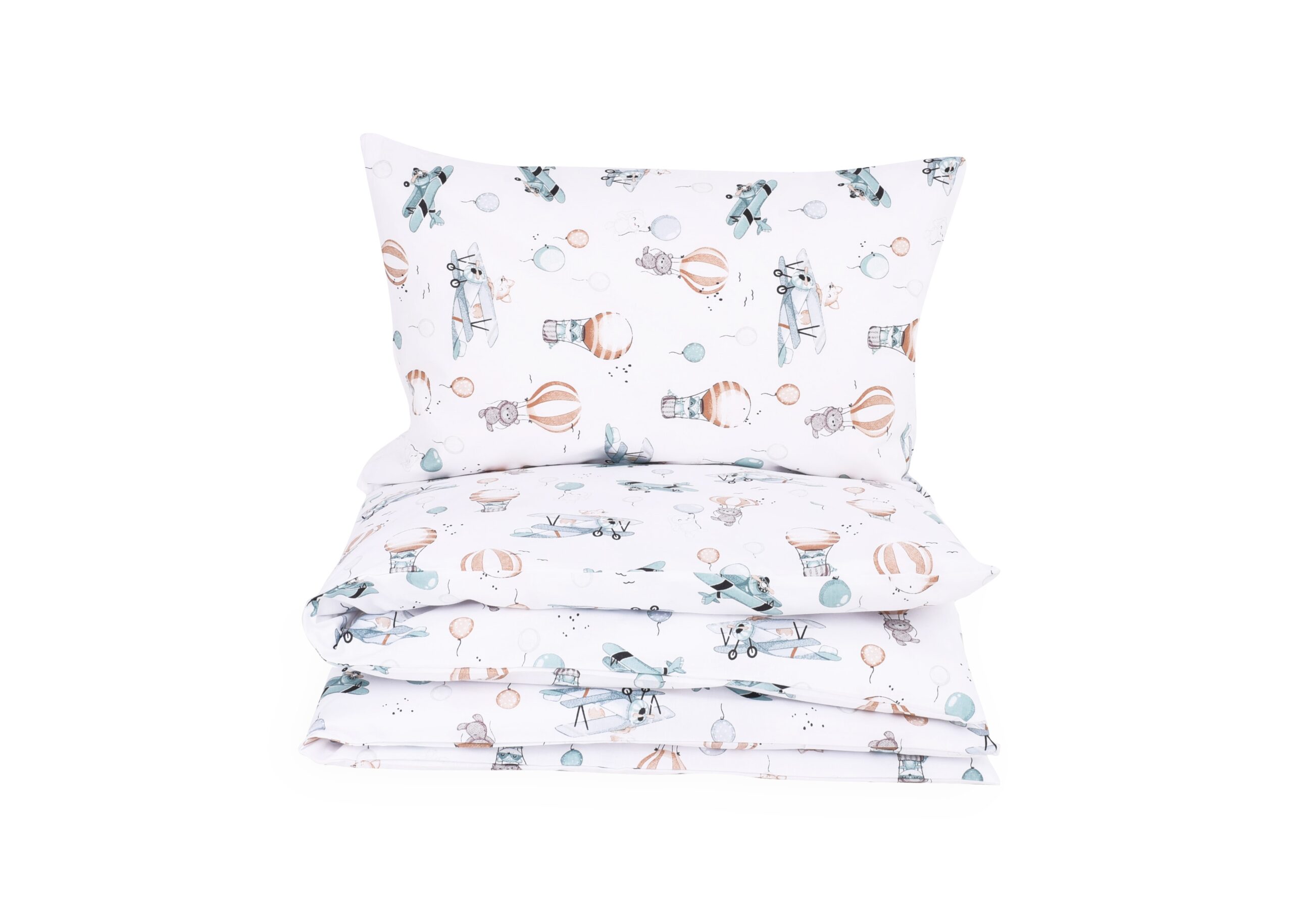 Kinderbettwäsche 120×90 aus 100 % Baumwolle – Weiß mit Flugzeug und Ballon Motiv für Jungen und Mädchen