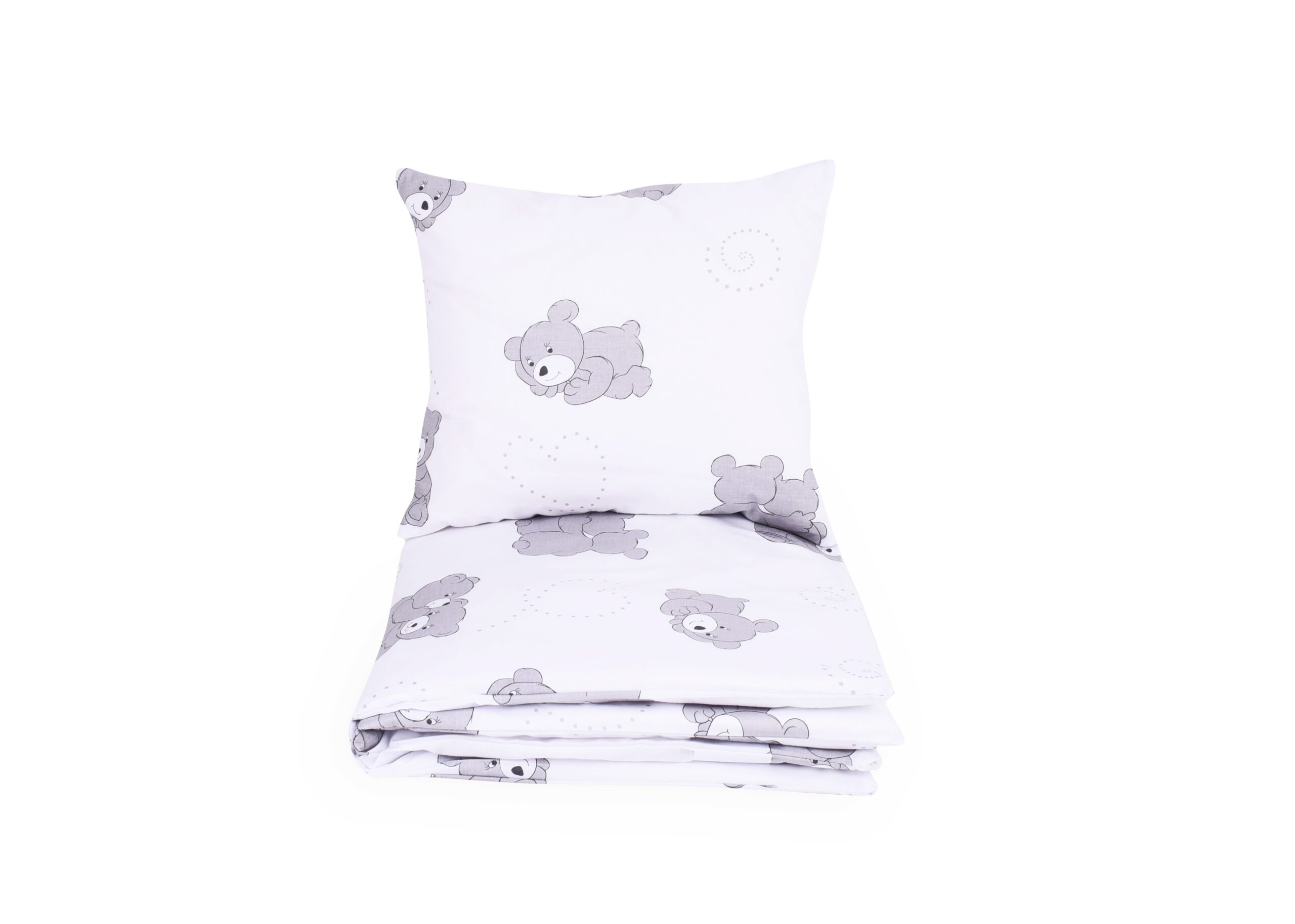 Kinderbettwäsche 135×100 aus 100 % Baumwolle – Weiß mit Grauen Bären für Jungen und Mädchen