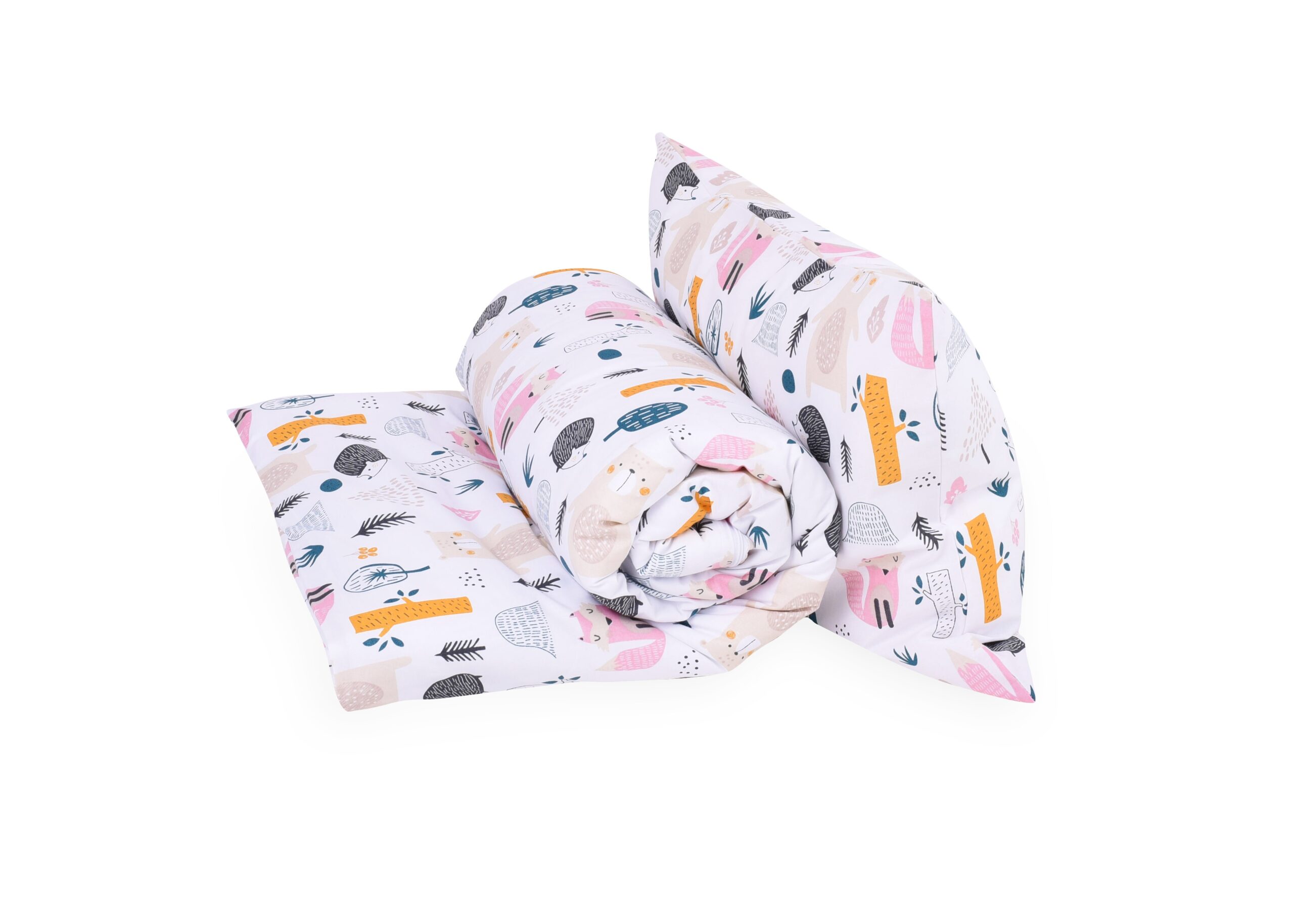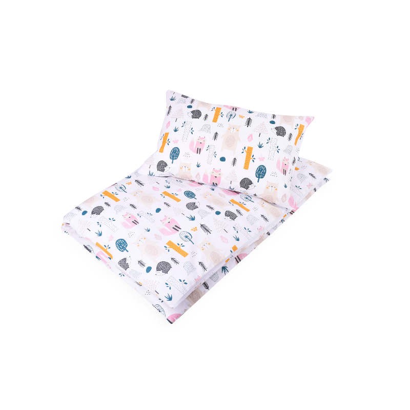Kinderbettwäsche 120×90 aus 100 % Baumwolle – Rosa mit Wald Motiv für Mädchen