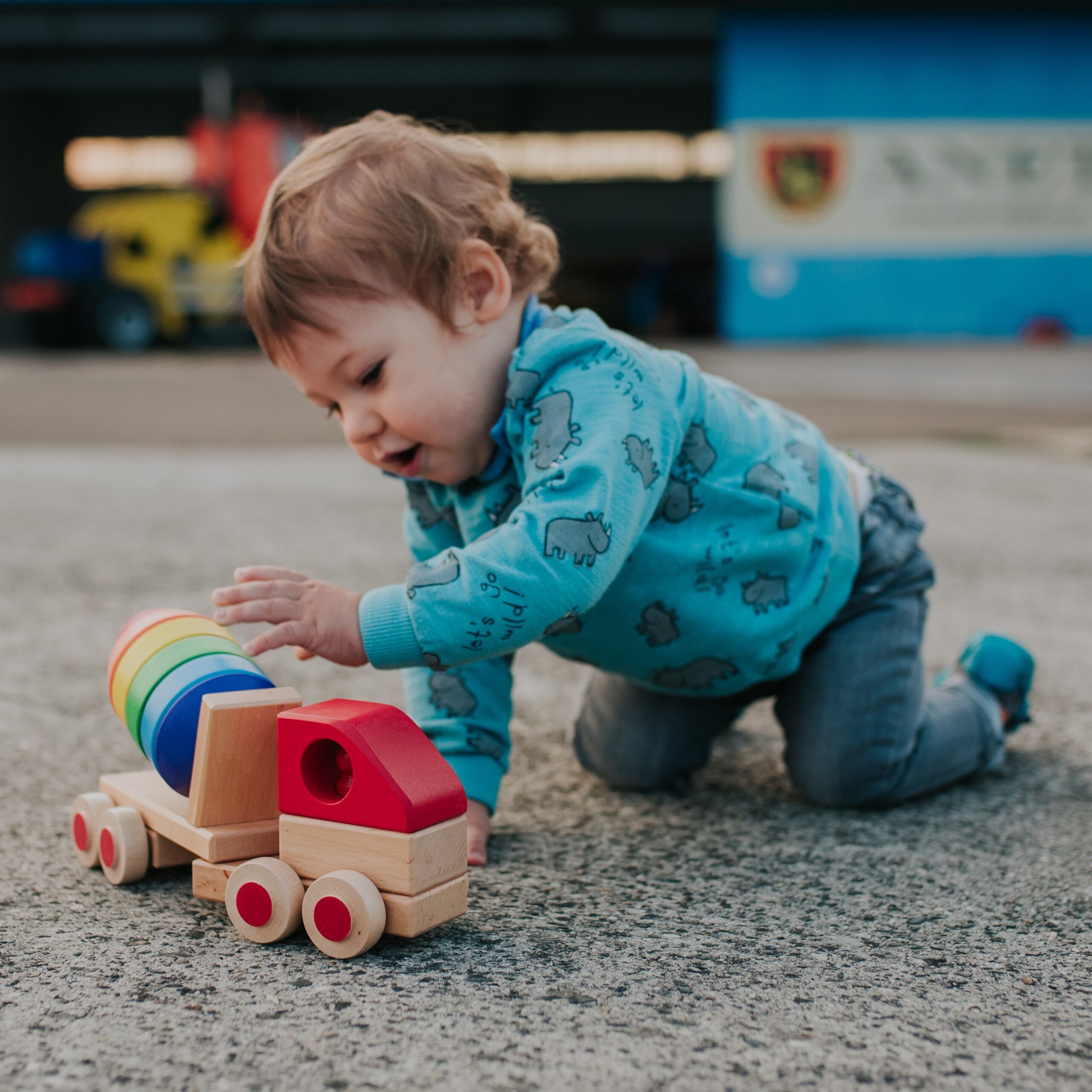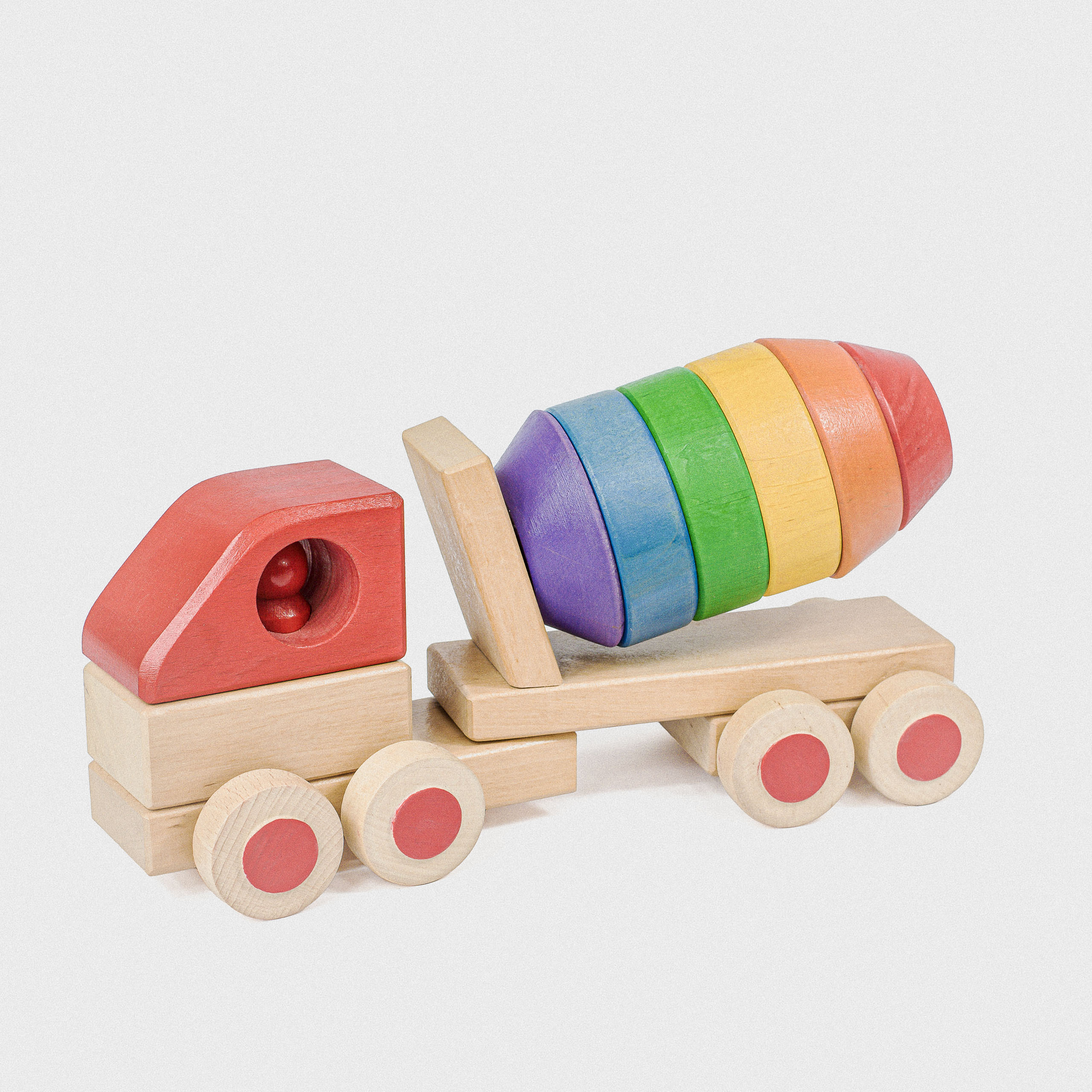 Das Betonmischer-Auto ist nicht nur ein gewöhnliches Spielzeug – es ist ein Lernwerkzeug, das die Entwicklung des Kindes auf vielen Ebenen fördert. Das Spielen mit diesem Holzauto hilft dem Kind, seine Hand-Augen-Koordination zu entwickeln sowie Kreativität und Konzentration zu fördern. Durch das Stapeln und Umstellen der bunten Bausteine lernt Ihr Kind, die Farben des Regenbogens zu erkennen und zu unterscheiden, während es gleichzeitig seine motorischen Fähigkeiten und sein logisches Denken schult.