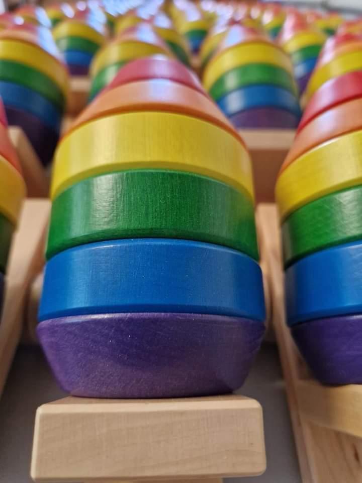 • Das Holzspielzeug bietet nicht nur großen Spielspaß, sondern lehrt auch die Reihenfolge der Farben im Regenbogen.
