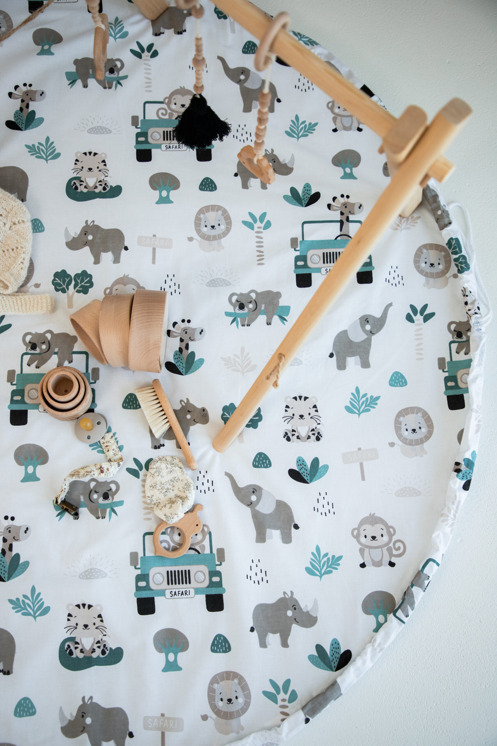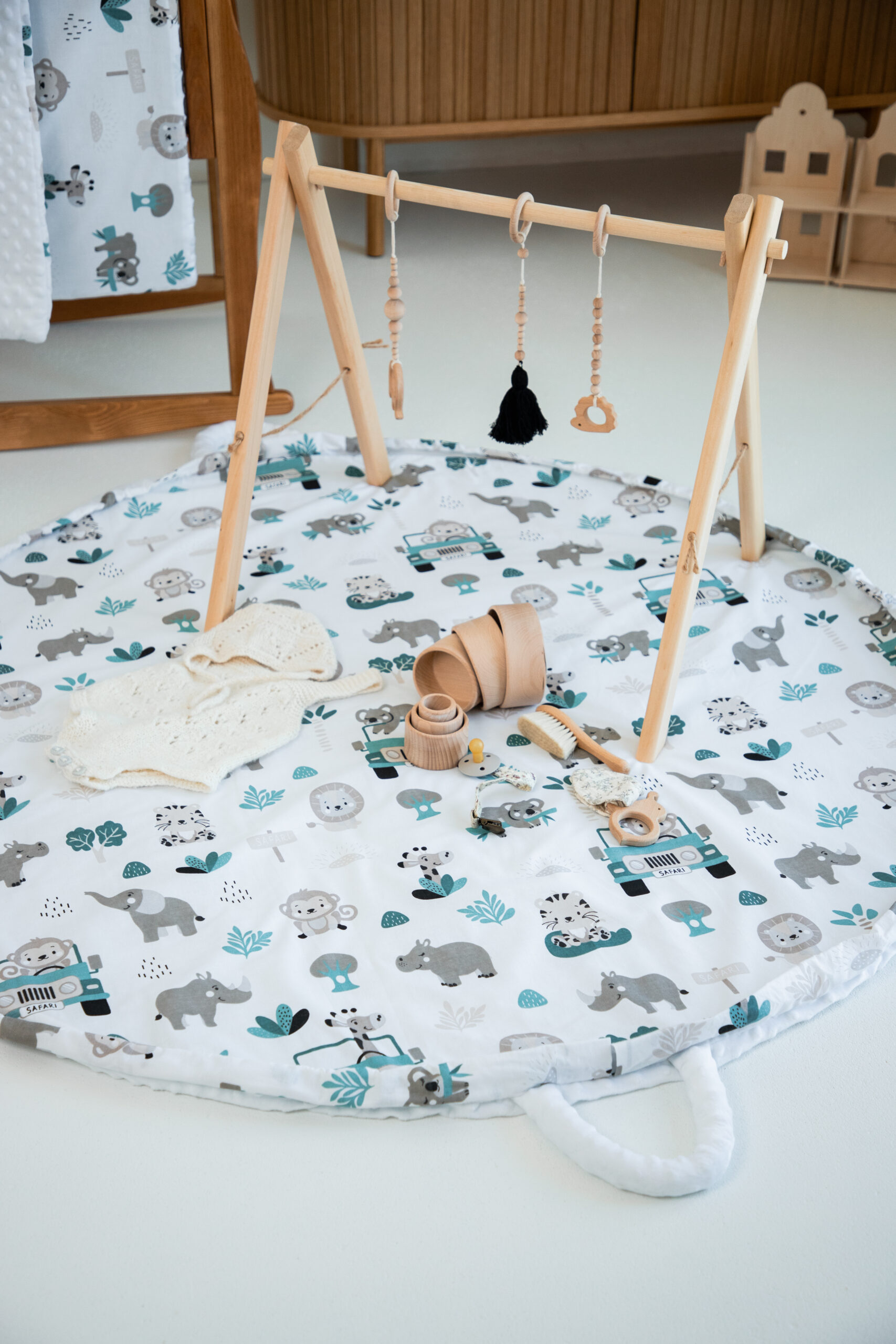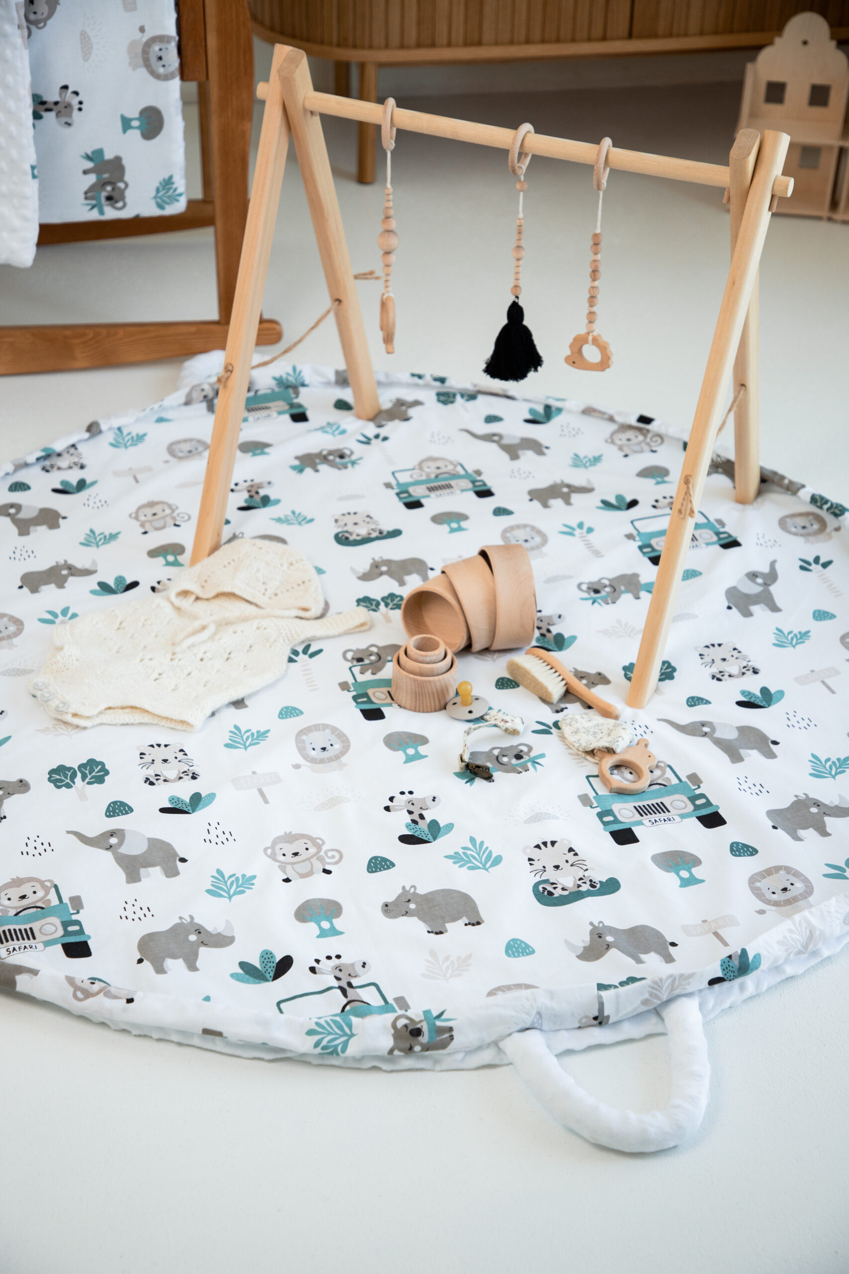 Spielmatte aus 100 % Baumwolle – Weiß mit Safari Motiv für Play und Go