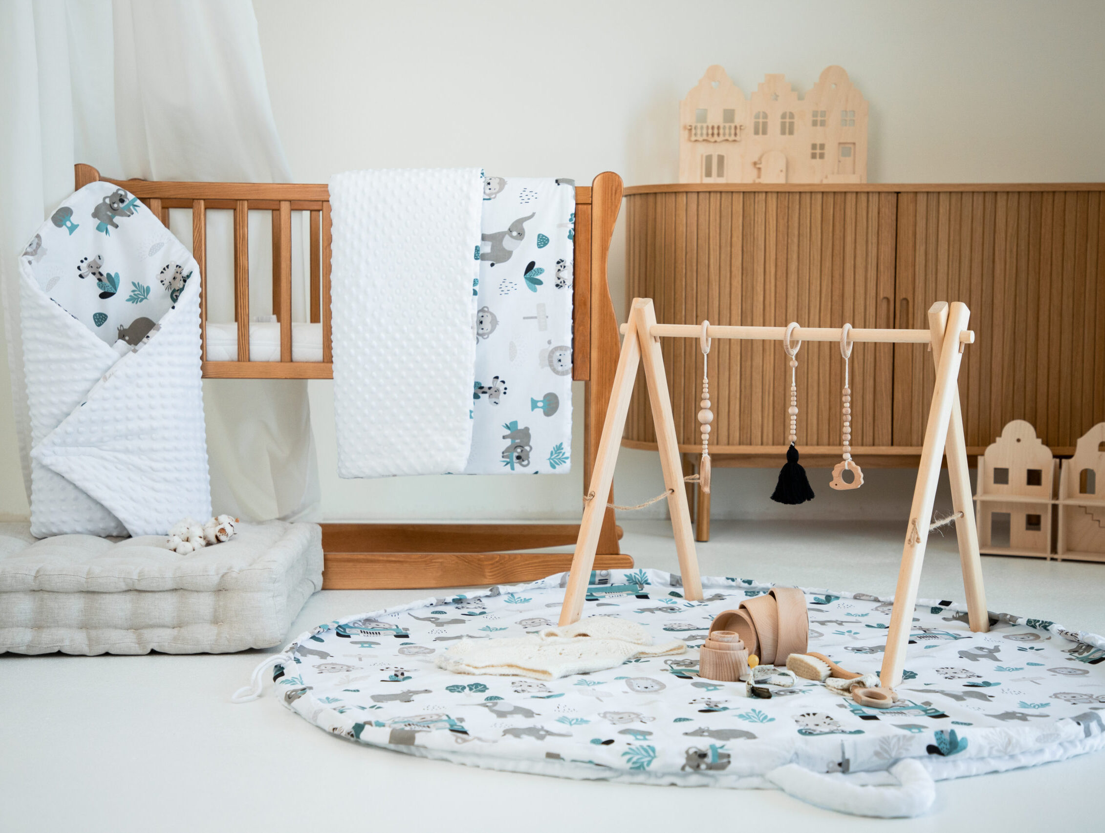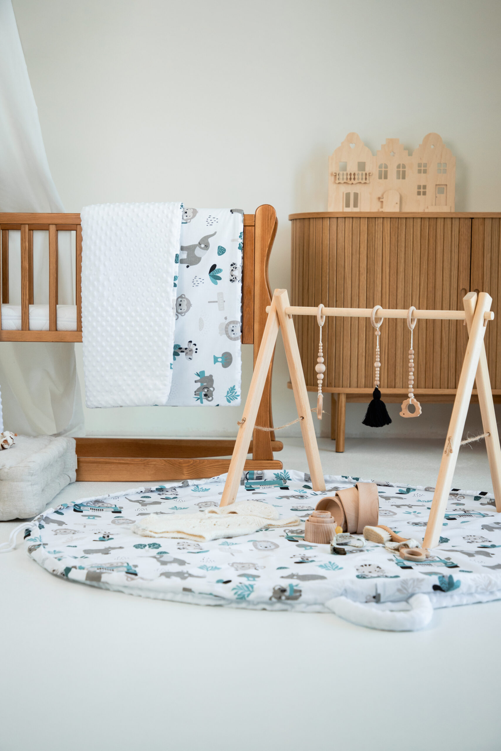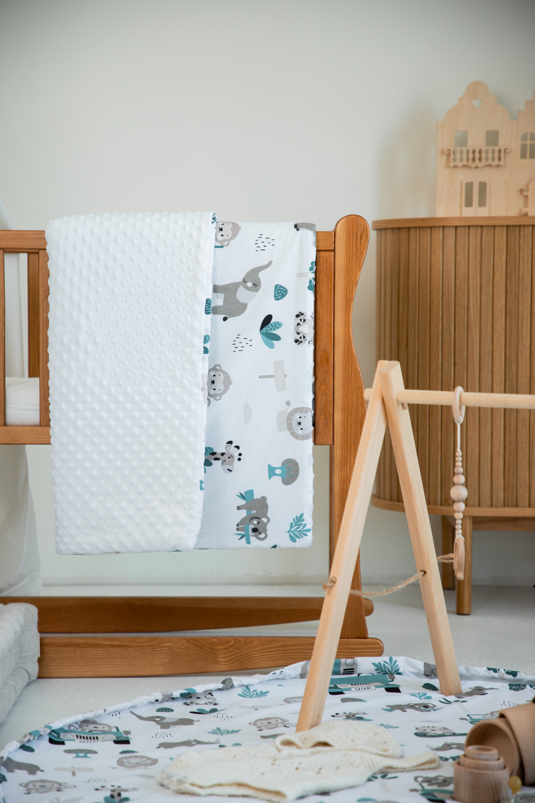 Kuschelset 3-teilig mit Minky Babydecke Einschlagdecke und Spielmatte – Tiermotiv Safari
