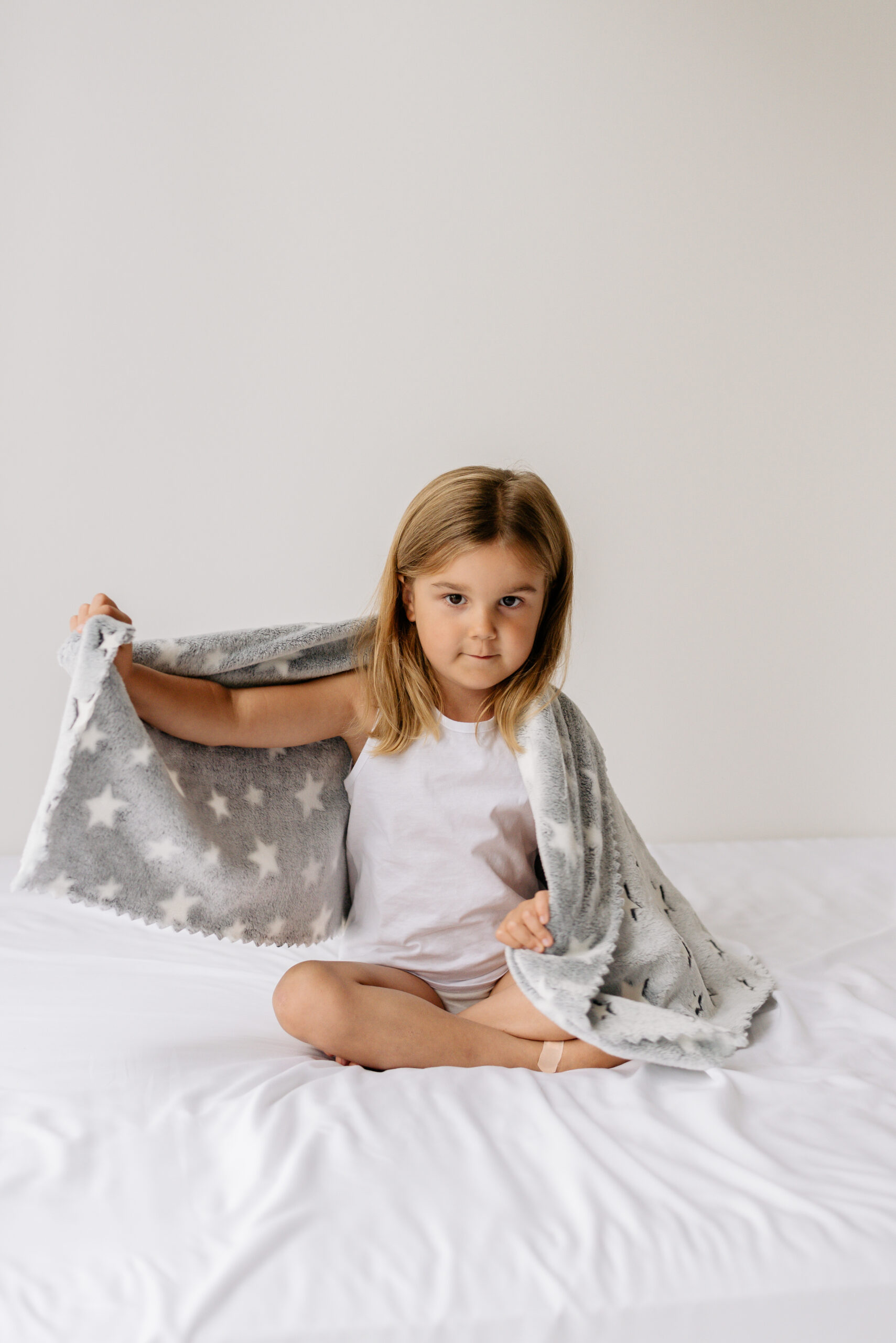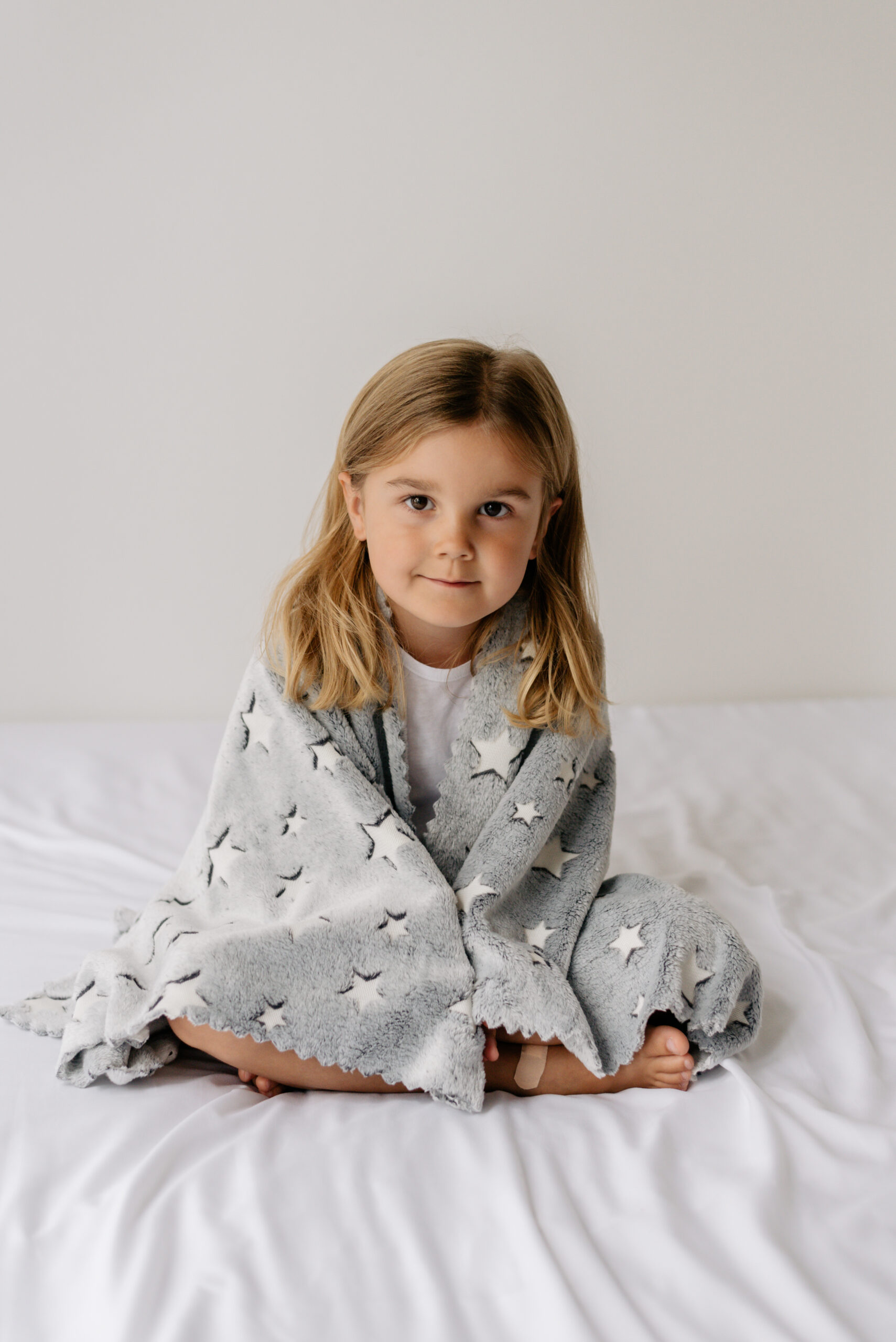 Kinder Polar Fleecedecke 75 x100cm – Grau und Weiß mit Sternchen Print für Jungen und Mädchen