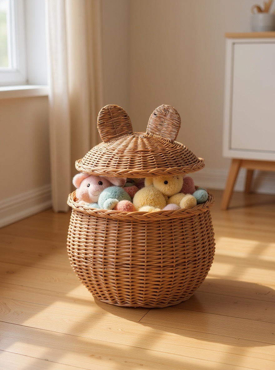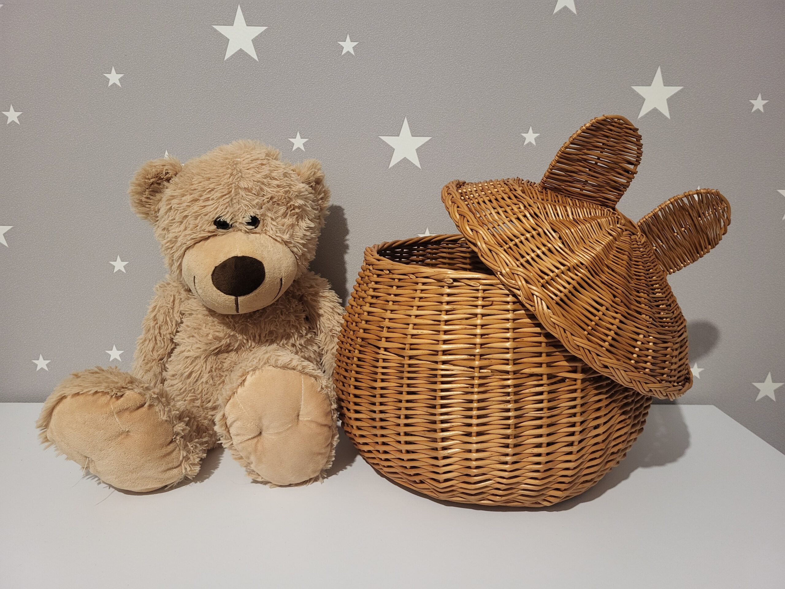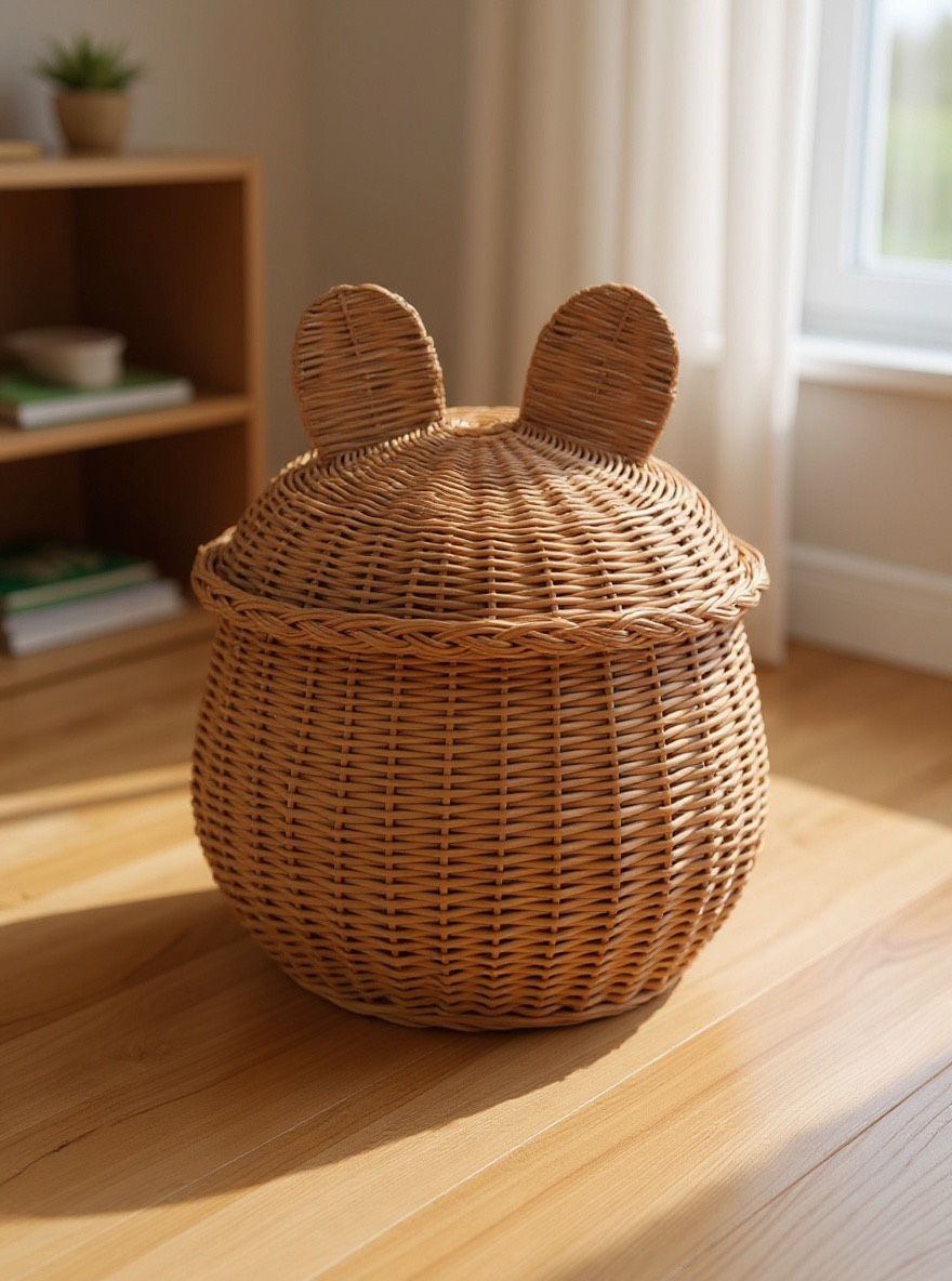 Praktischer runder Bären Weidenkorb für das Kinderzimmer( Klein )