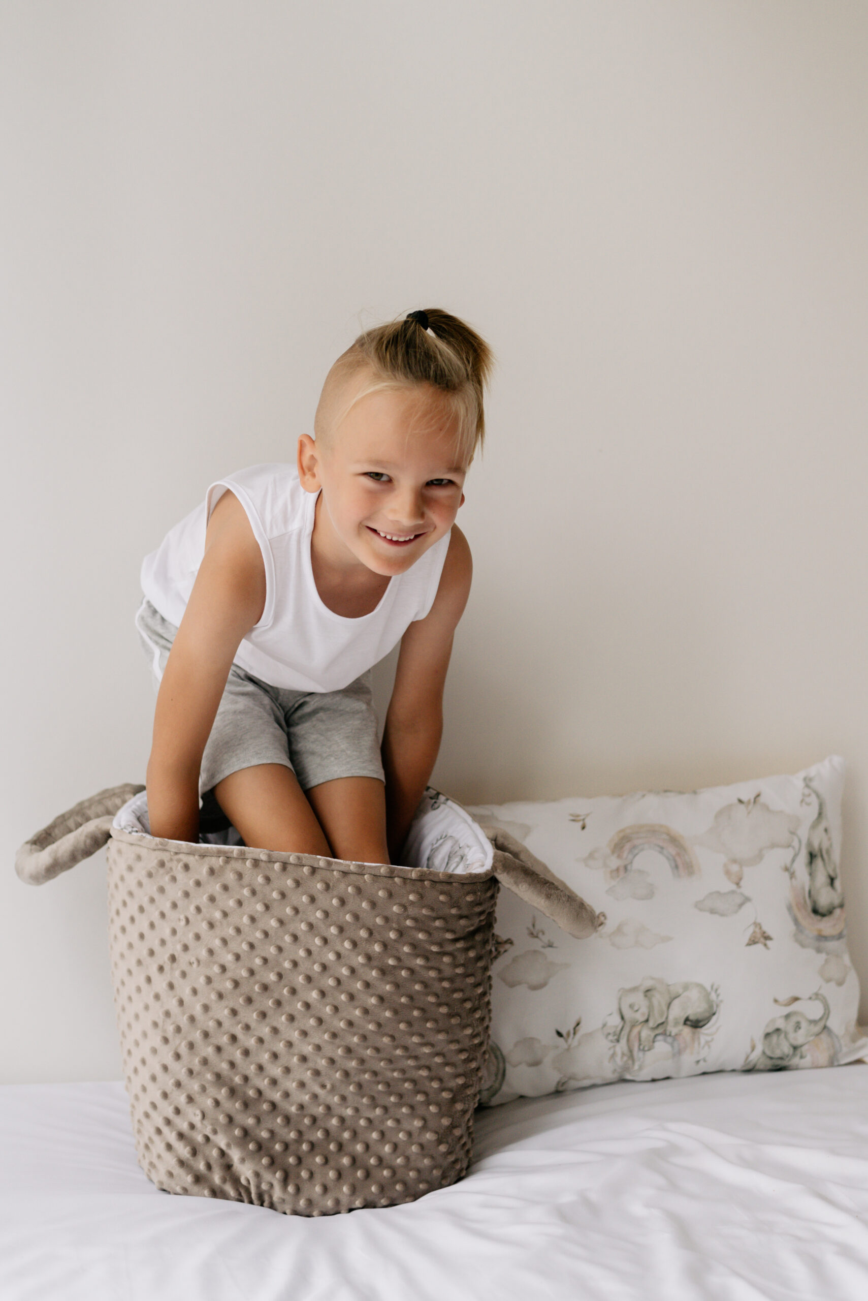 Schaffen Sie einen gemütlichen Spielbereich mit unserem Spielzeugkorb „Elefanten“. Jetzt sind die Spielzeuge immer griffbereit, und der Raum bleibt ordentlich und stilvoll!