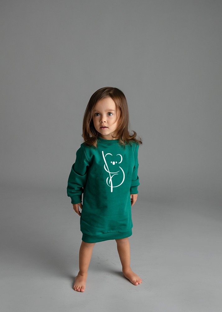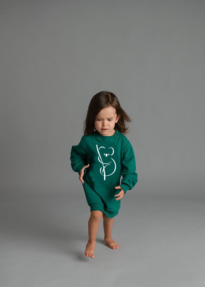 Mädchen Sweatkleid Koala – Pullover-Kleid in Grün mit Tiermotiv Koala