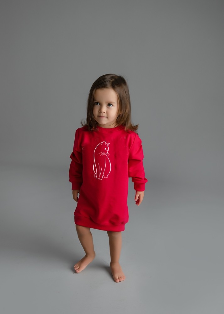 Mädchen Sweatkleid Katze – Pullover-Kleid in Rot mit Tiermotiv Katze