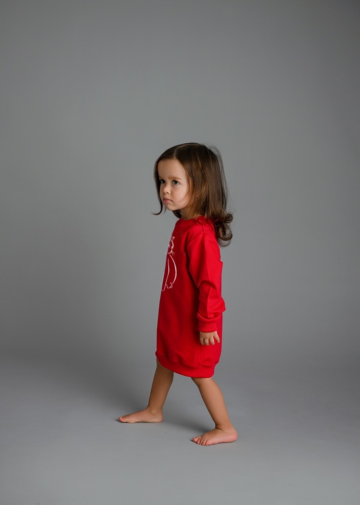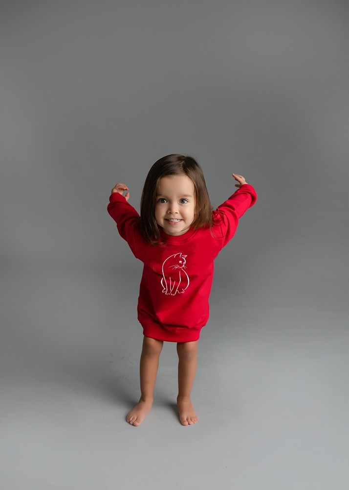 Sweatkleid Rote Katze mit Tasche Gr.104-116