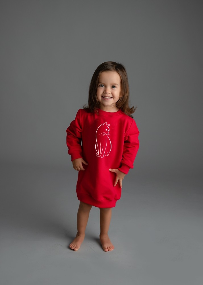 Mädchen Sweatkleid – Pullover-Kleid mit Taschen in Rot mit Tiermotiv Katze