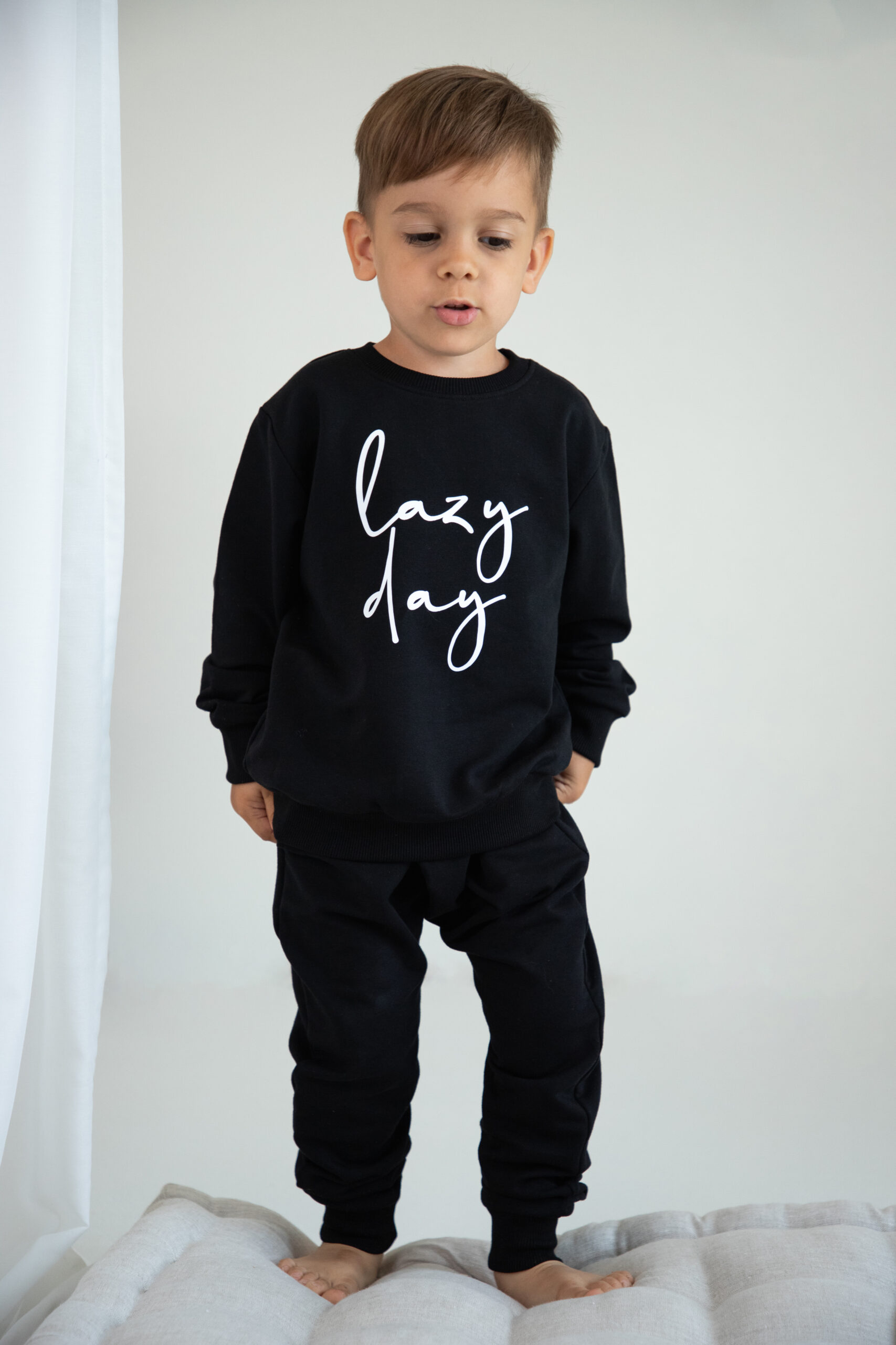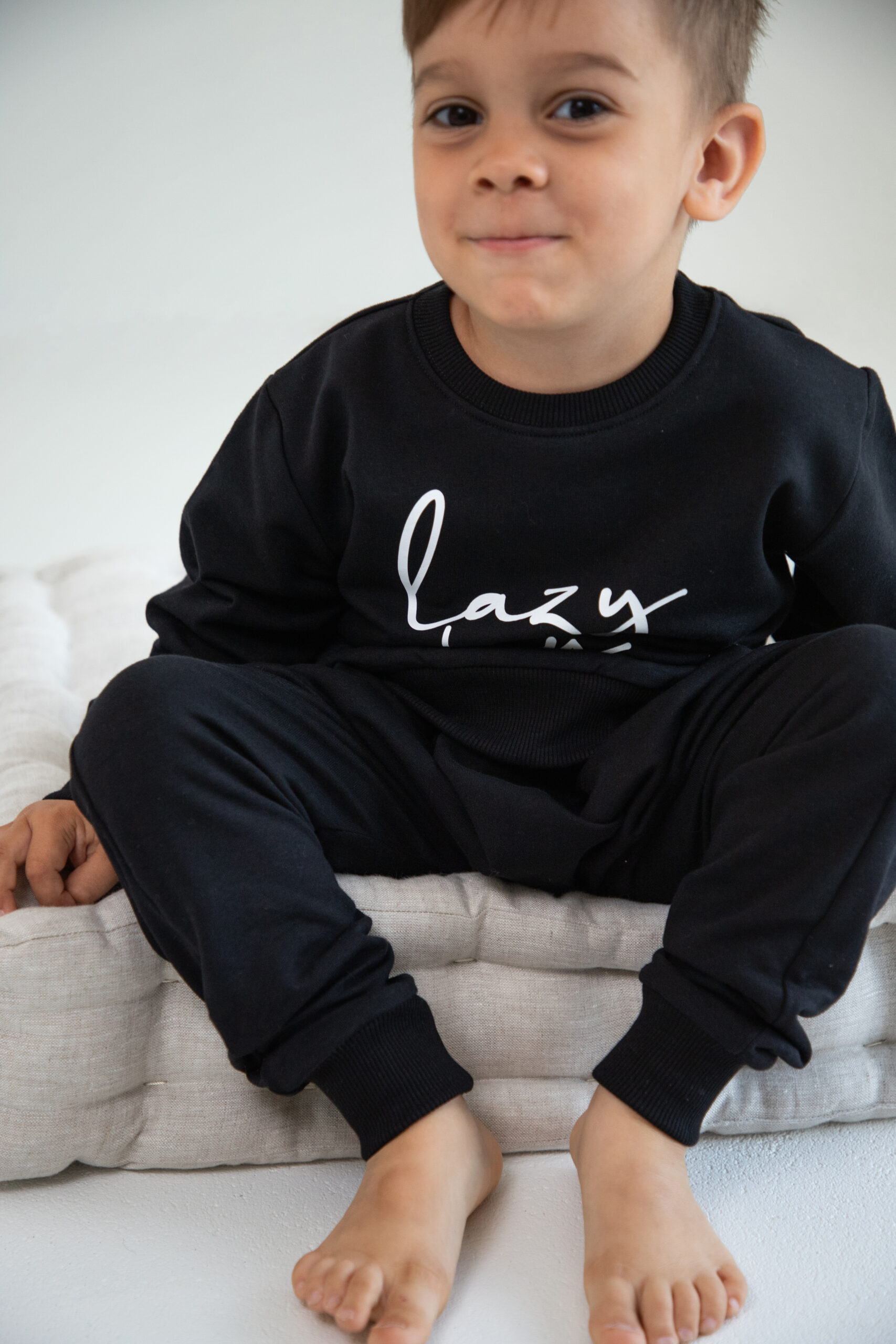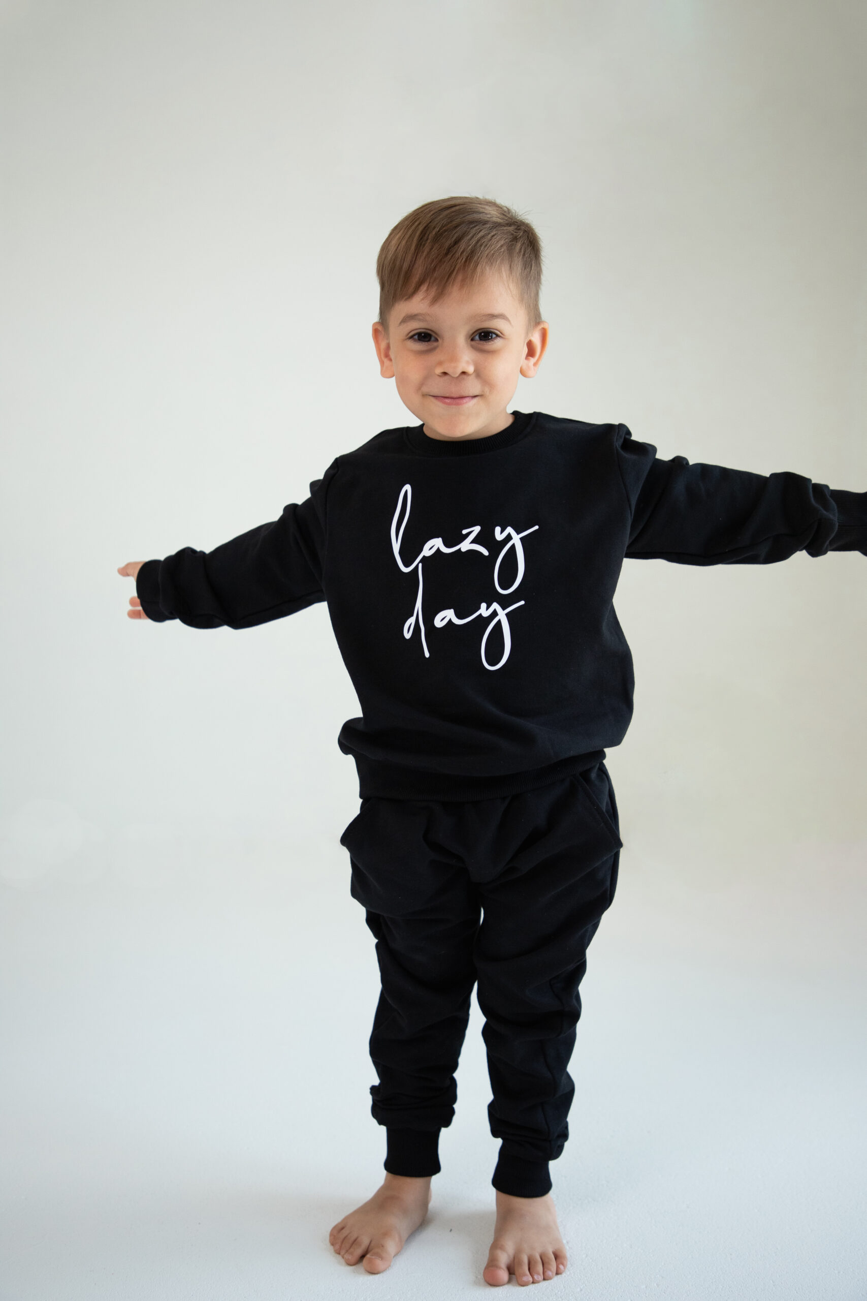 Kinder Trainingsanzug 2-teiliges Set Schwarz “Lazy Day” Jogginganzug für Jungen und Mädchen