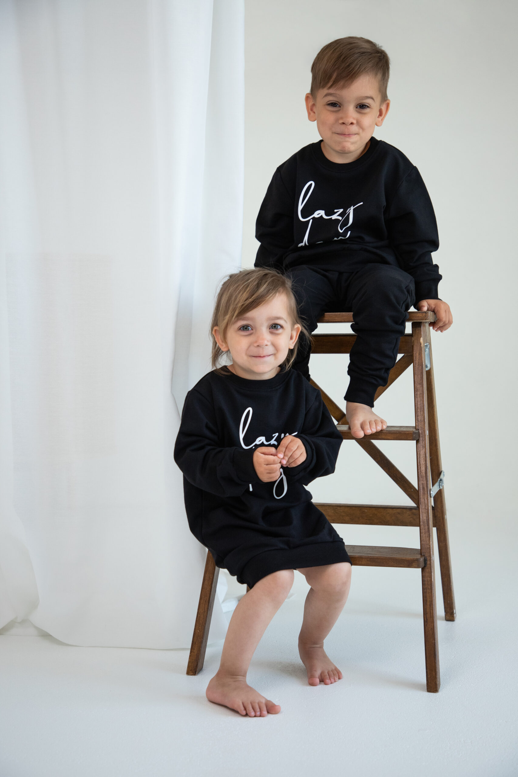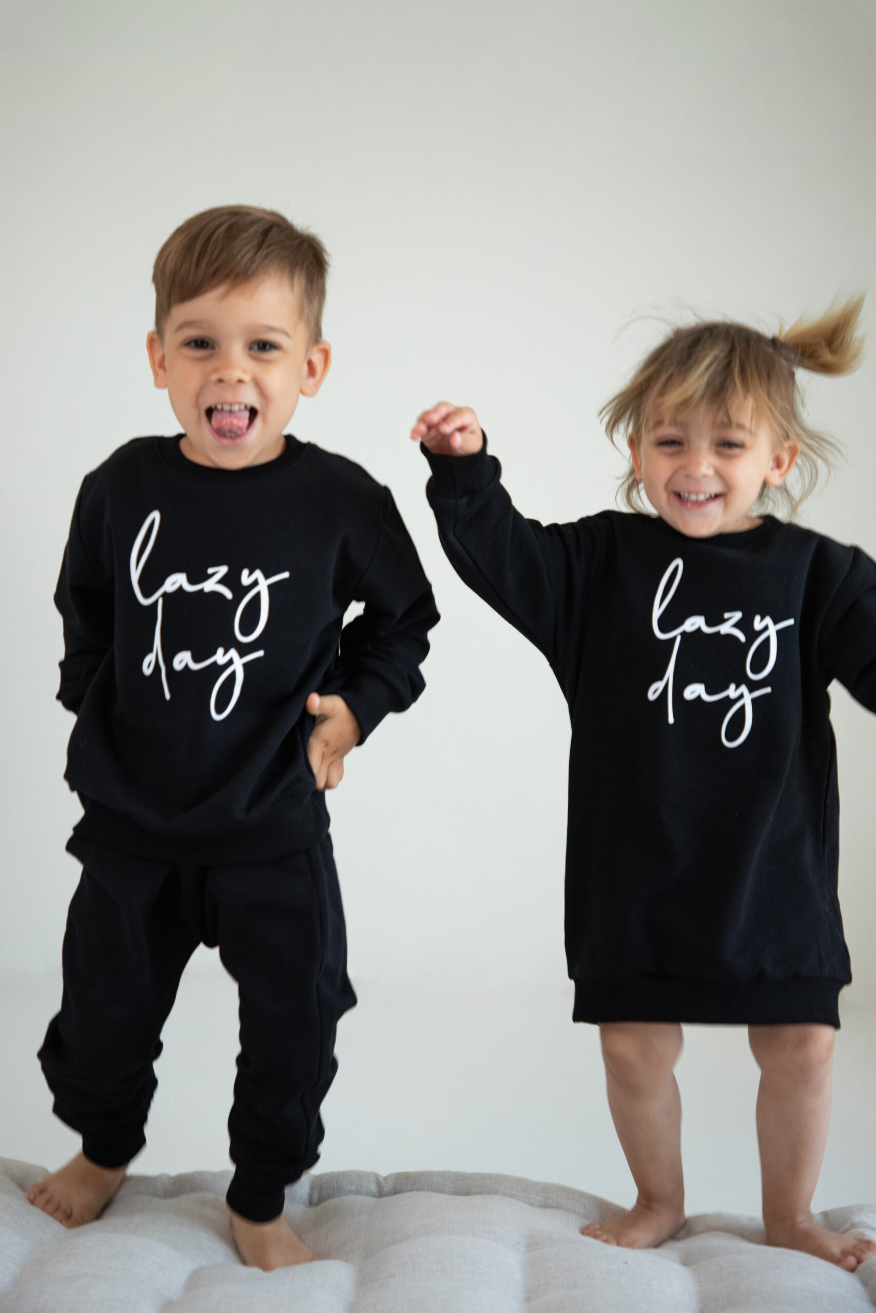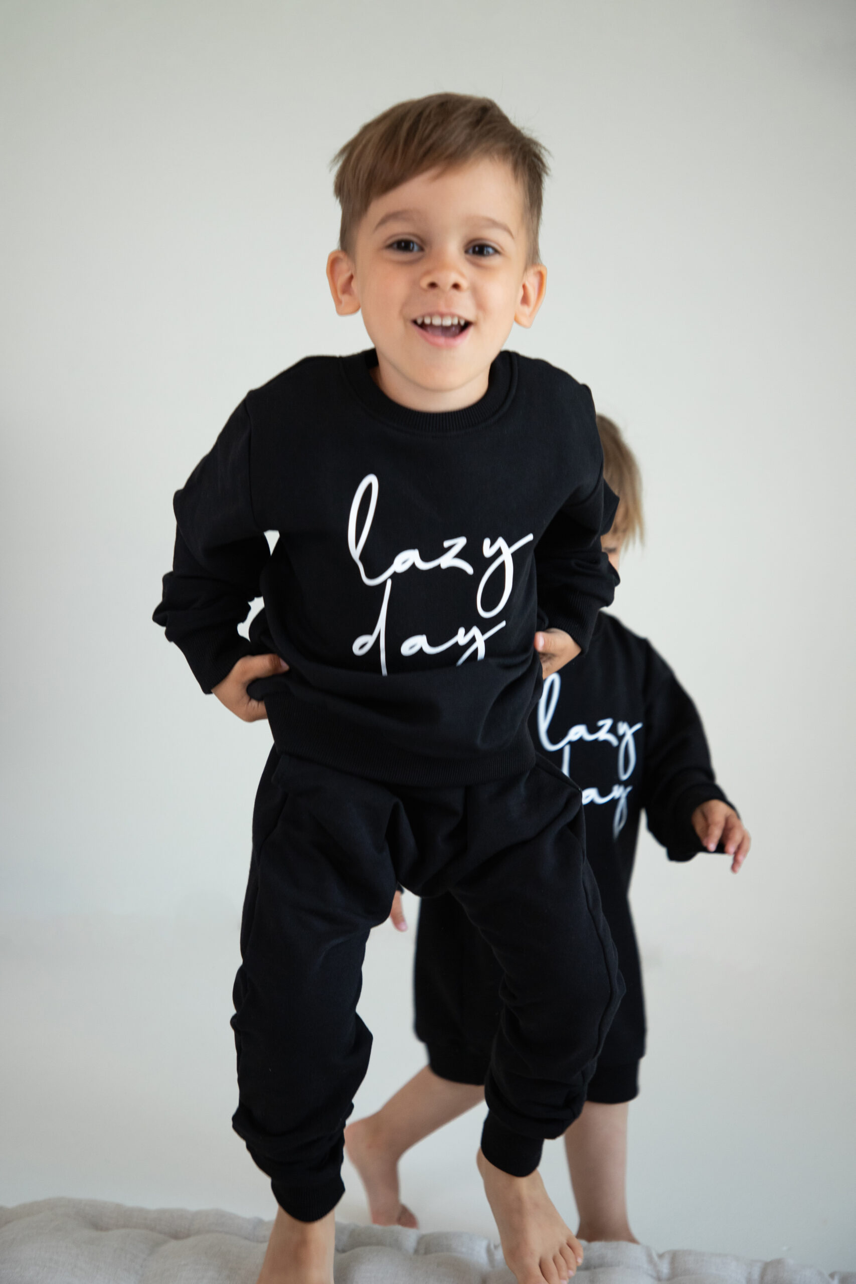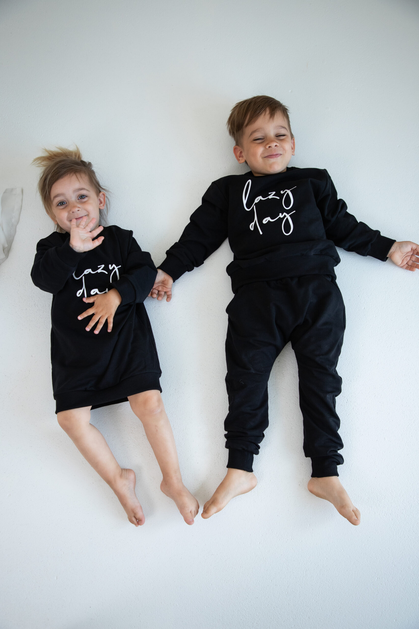 Kinder Trainingsanzug 2-teiliges Set Schwarz “Lazy Day” Jogginganzug für Jungen und Mädchen
